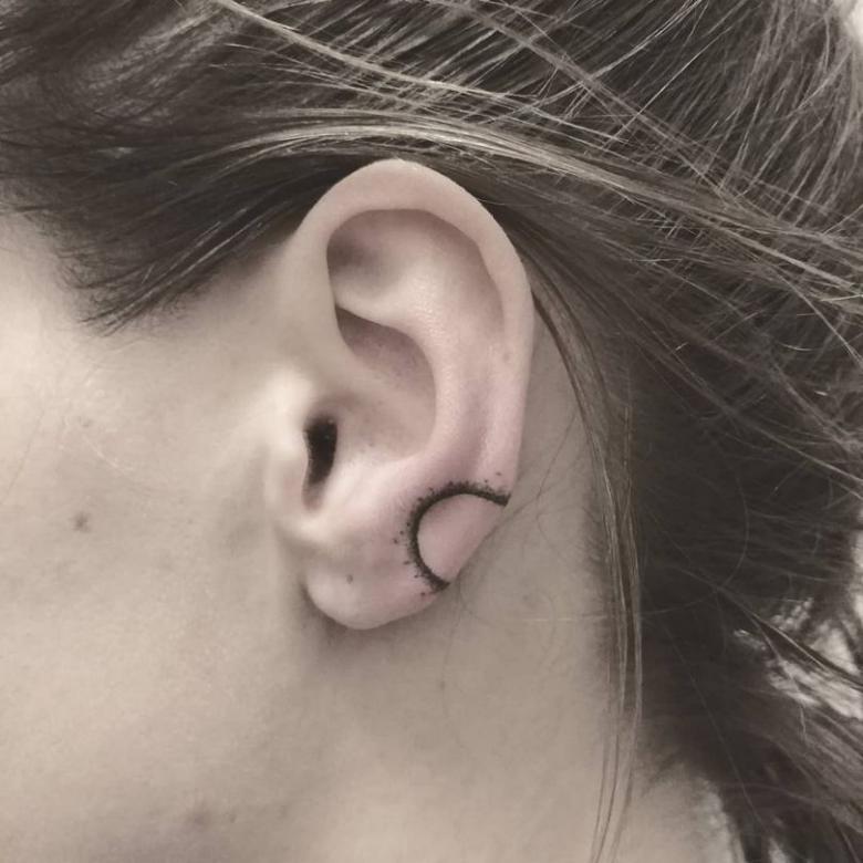 Le tatouage sur le cartilage de l'oreille est très beau, mais vous devez choisir un motif clair avec peu de détails. Sinon, le plus beau des tatouages ressemblera de loin à une tache sale. Un tatouage sur le cartilage peut imiter un grain de beauté, ils sont censés apporter la bonne fortune.
