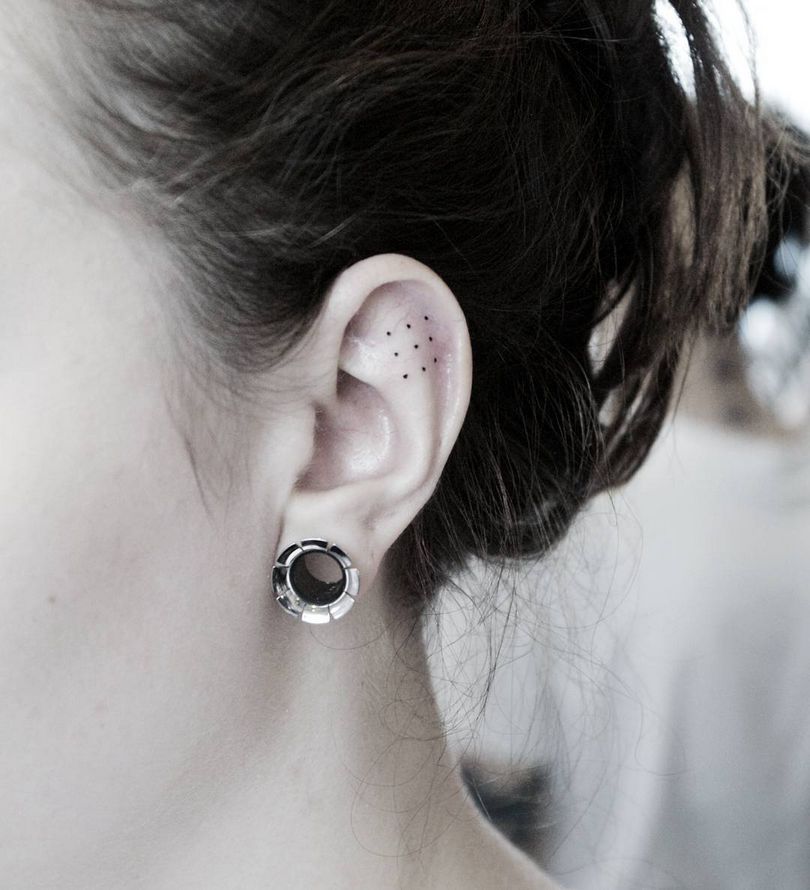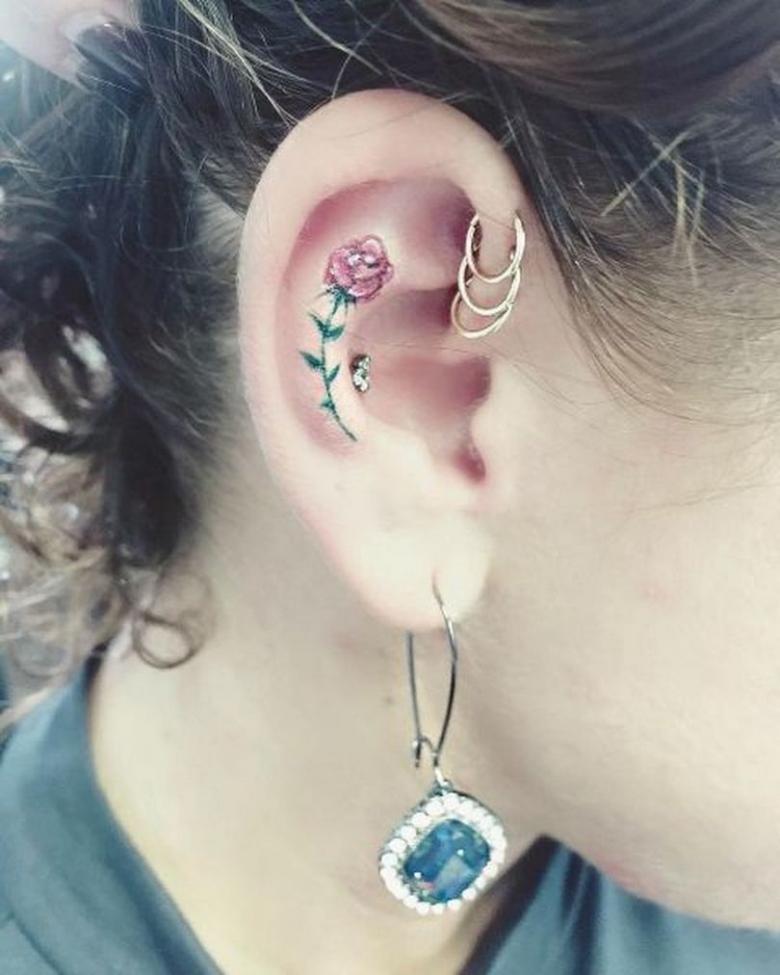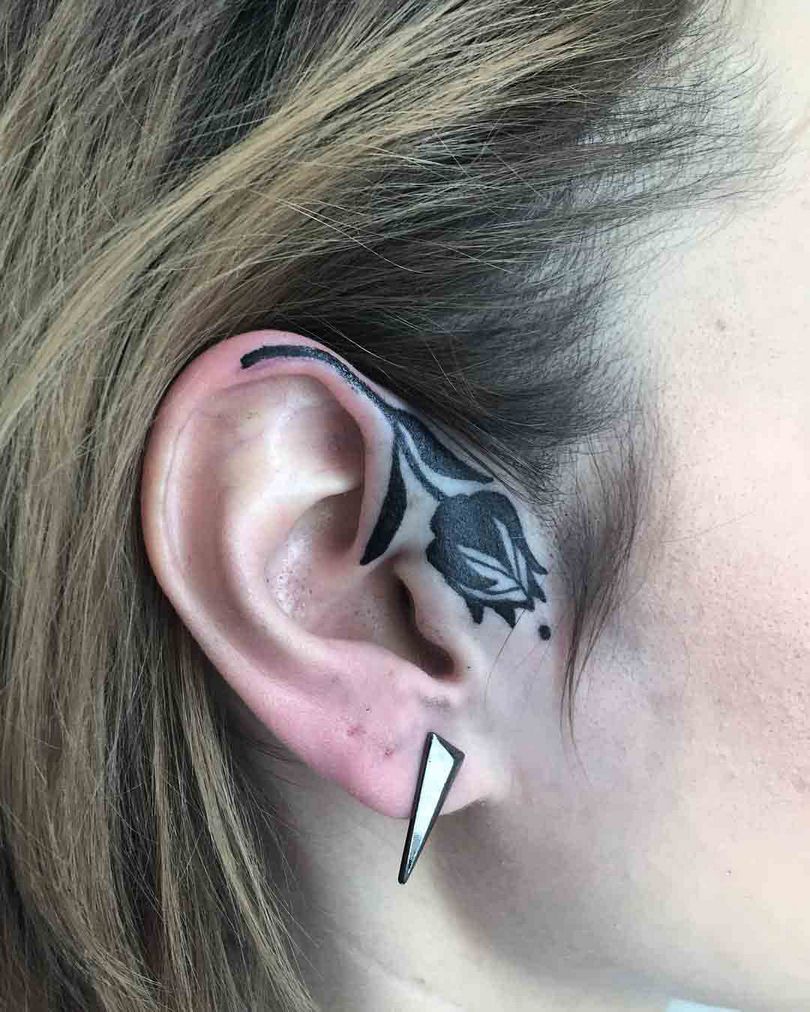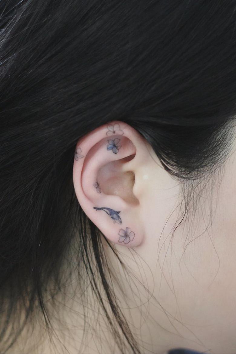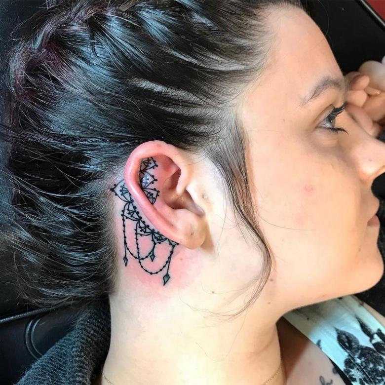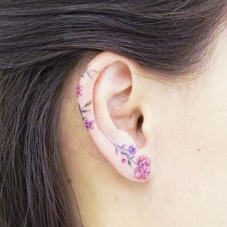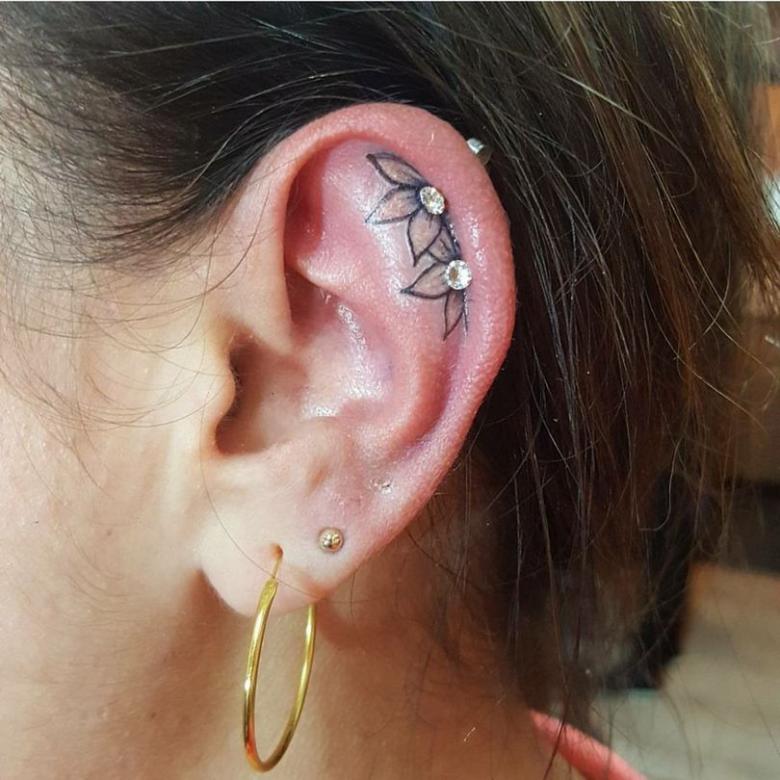 Les tatouages sur l'oreille sont de plus en plus visibles sur les photos de célébrités et de personnes ordinaires. Les petites photos sont choisies par les filles et les garçons. Le tatouage sur ou juste derrière l'oreillette est petit et permet d'exprimer le caractère du porteur. C'est une bonne solution pour ceux qui n'osent pas se faire de gros tatouages mais qui veulent ajouter une touche d'éclat à leur apparence.