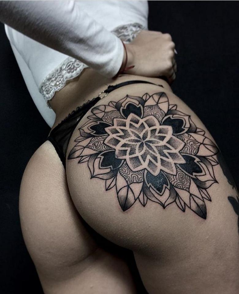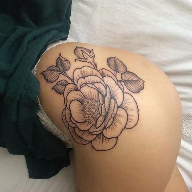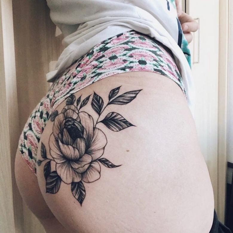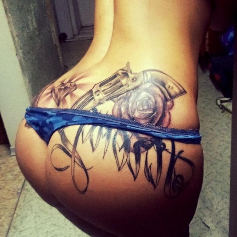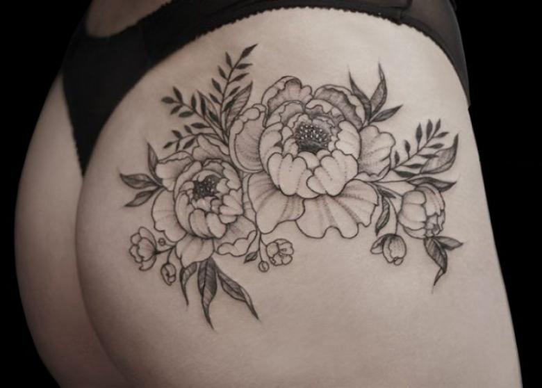 Tatouage sur les fesses pour les filles - Caractéristiques de l'application, options de croquis et idées de photos sympas