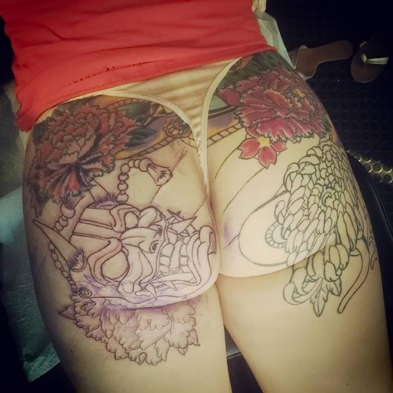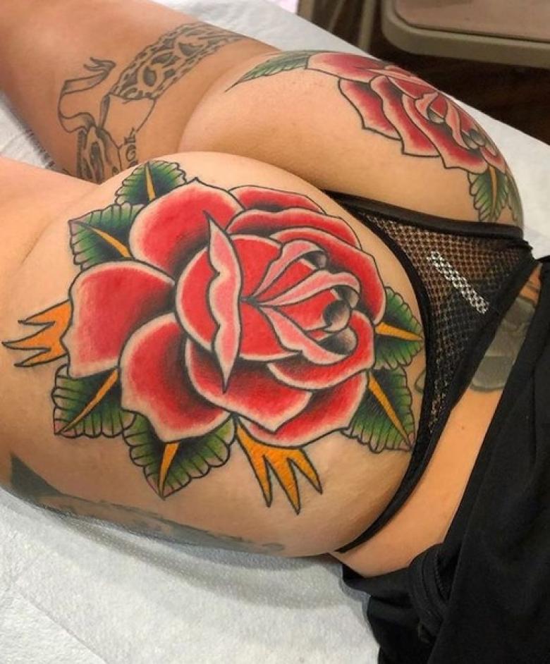 - Les parties molles ne sont pas aussi sensibles à la douleur, de sorte qu'un tatouage sur les fesses n'est pas très gênant, sauf si l'on compte l'os de la cuisse. La peau des fesses est durcie par le soleil et l'exercice, la couche de graisse protège les tissus internes et la peau endommagée guérit rapidement.