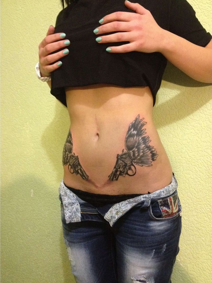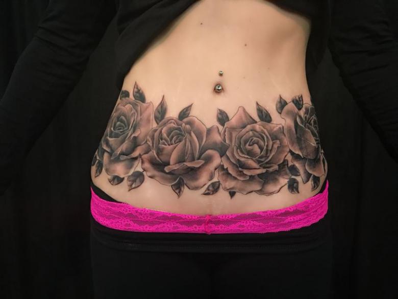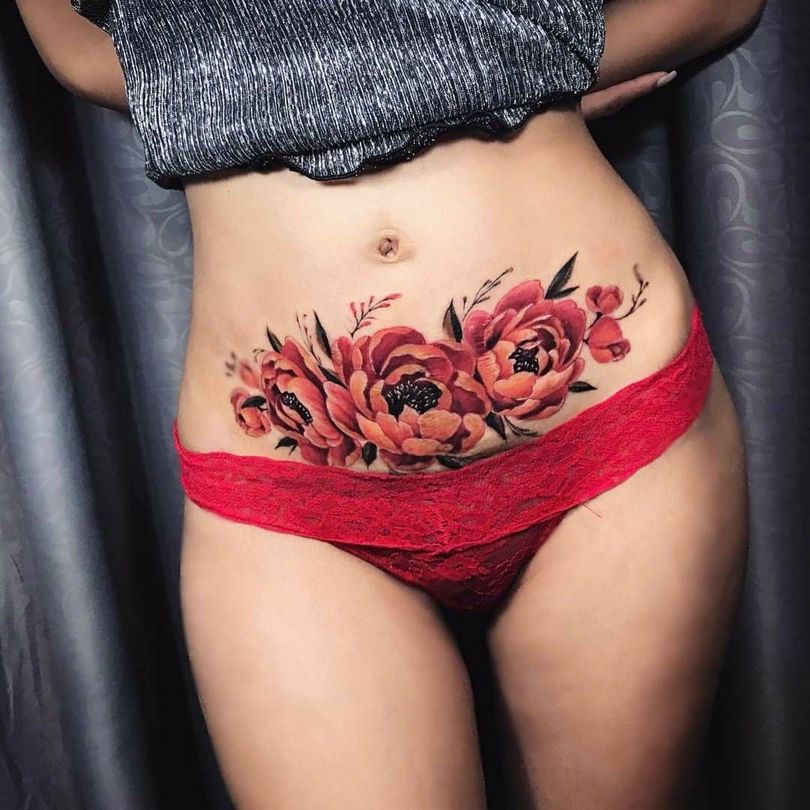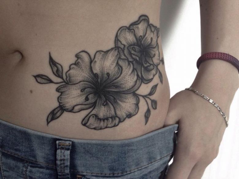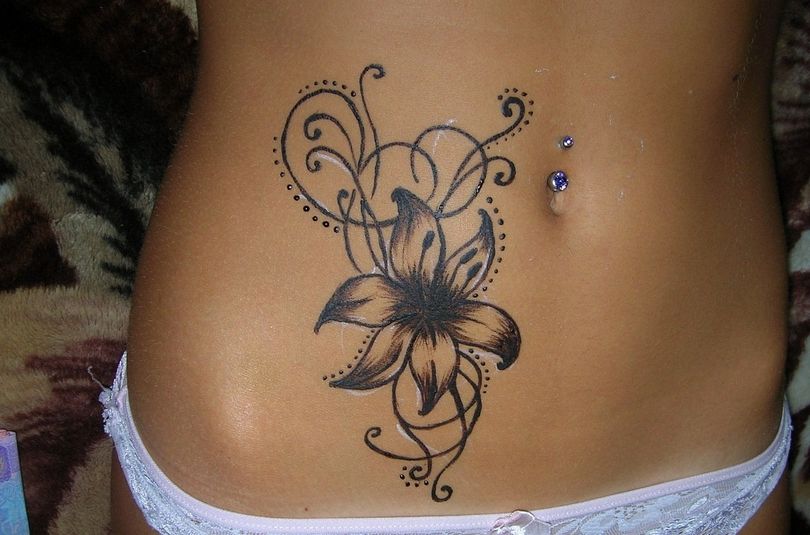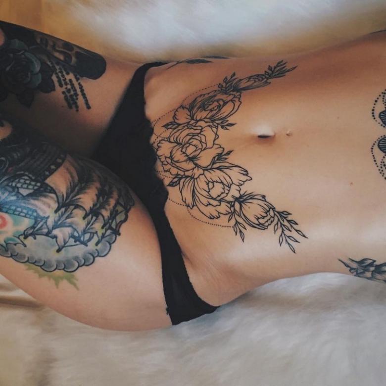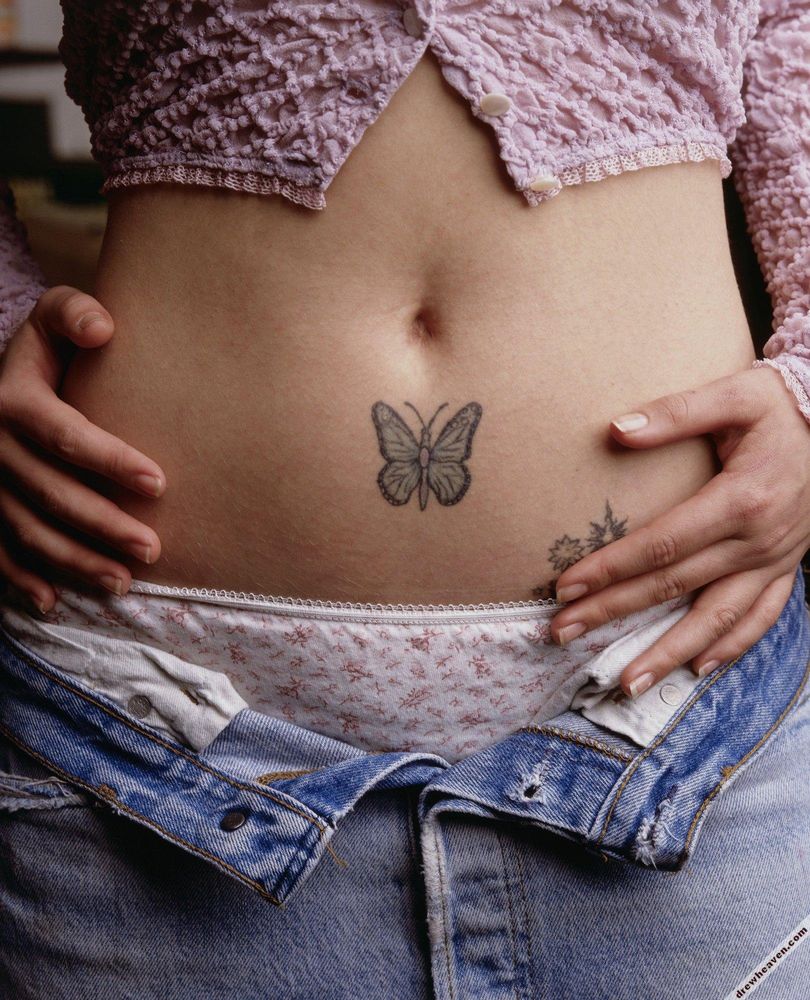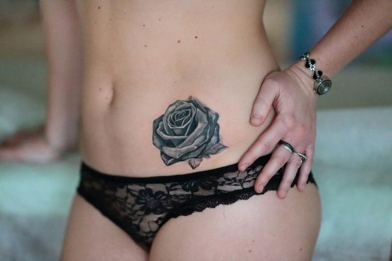 Toutes les filles peuvent se permettre de se faire tatouer le bas-ventre. Cela permet de cacher des zones de peau disgracieuses ou d'attirer l'attention des autres.