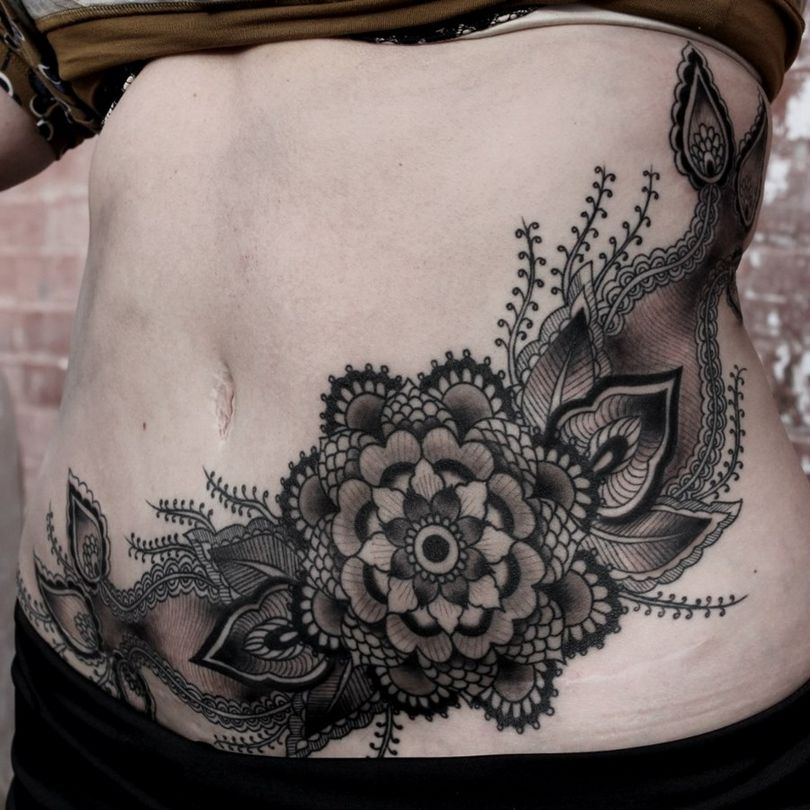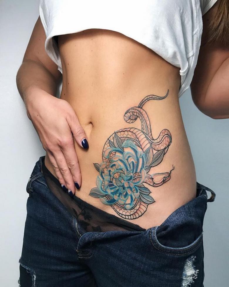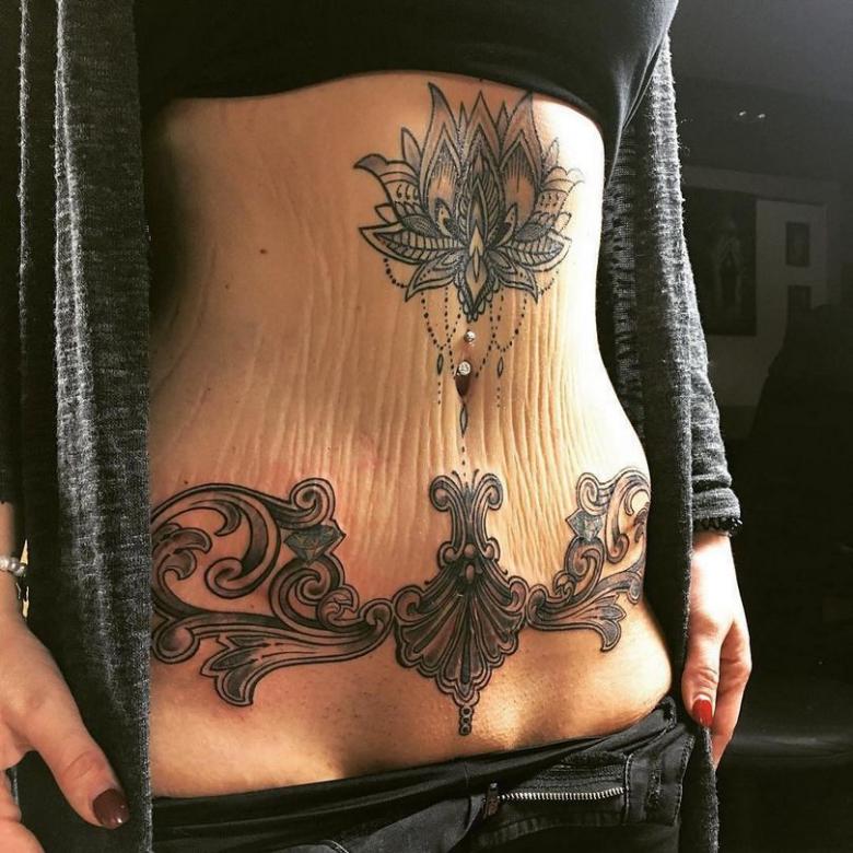 Tatouage sur l'abdomen pour les filles - avantages et inconvénients, où appliquer, designs sympas et idées de photos