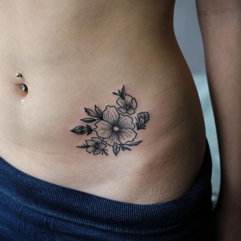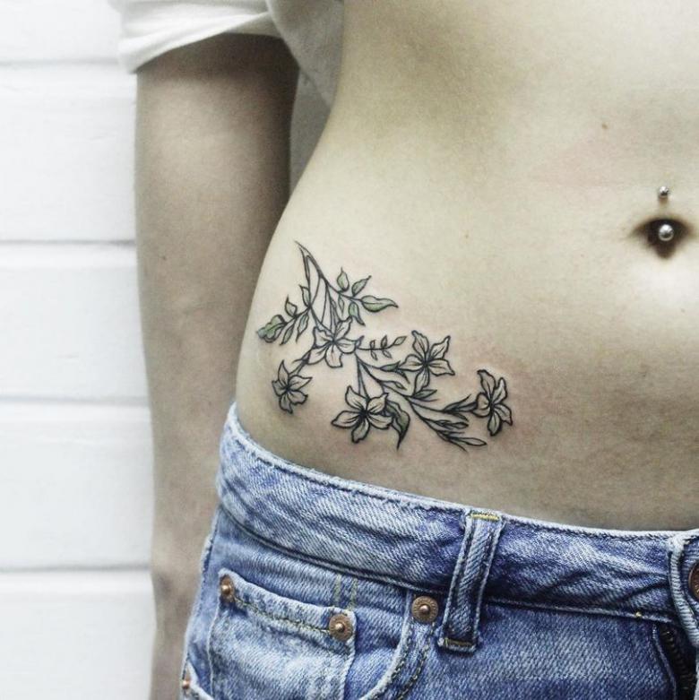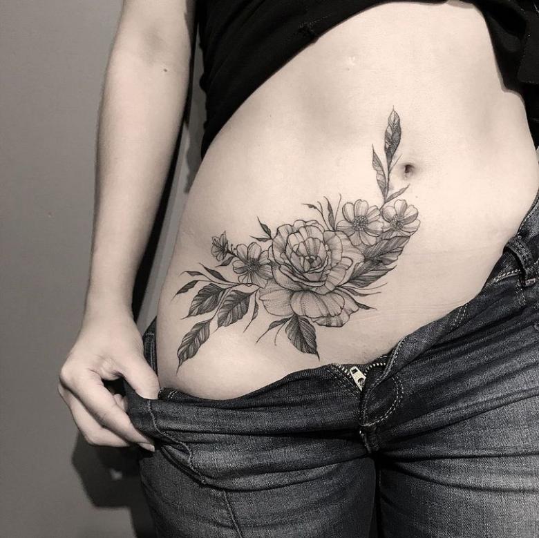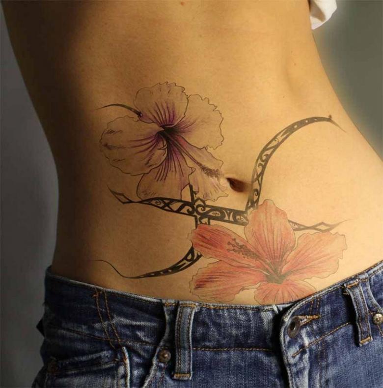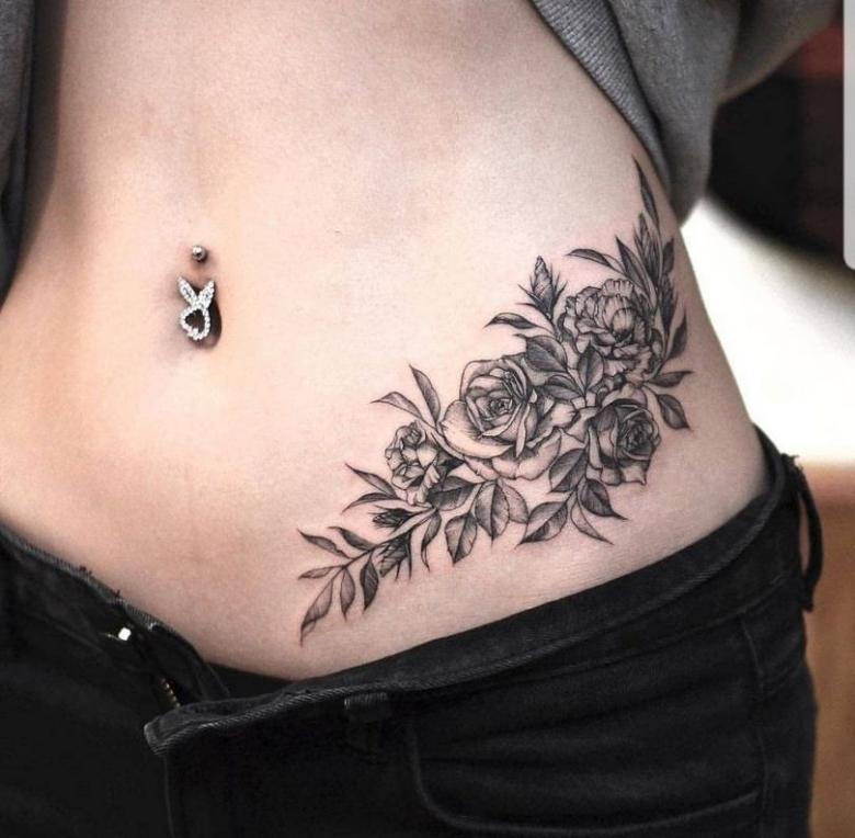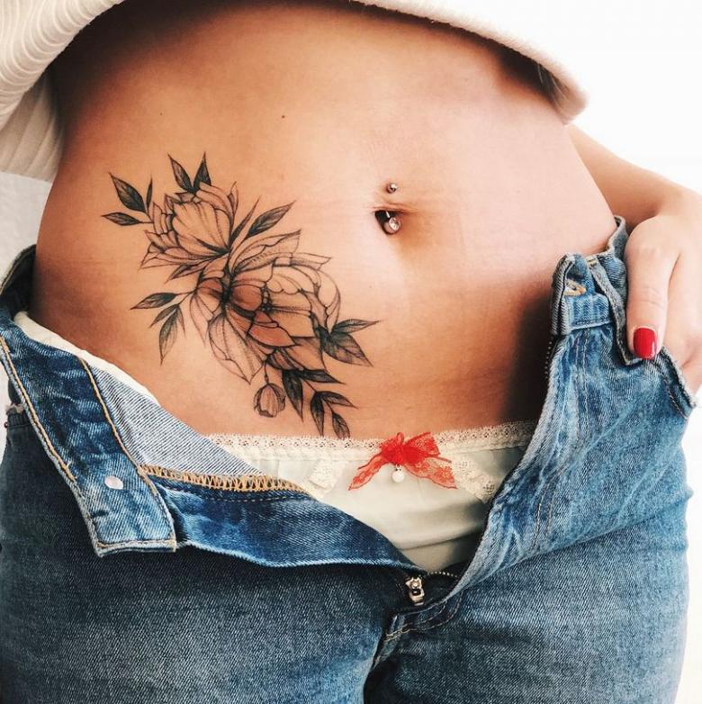 Une variété de motifs floraux sur le ventre d'une femme est le choix le plus courant. C'est un look qui fait immédiatement ressortir la beauté et la féminité et vous permet de vous démarquer de la foule. De nombreuses filles combinent leurs tatouages avec des vêtements, ce qui leur donne un aspect aussi harmonieux et tendance que possible par rapport aux autres.