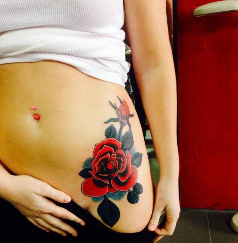 Un sérieux désavantage est également associé à l'accouchement. Après la naissance d'un enfant, la peau de l'abdomen s'étire et se détend. Le tatouage est clairement gâché et change l'apparence pour le pire. Il est conseillé d'opter pour un tatouage après l'accouchement.