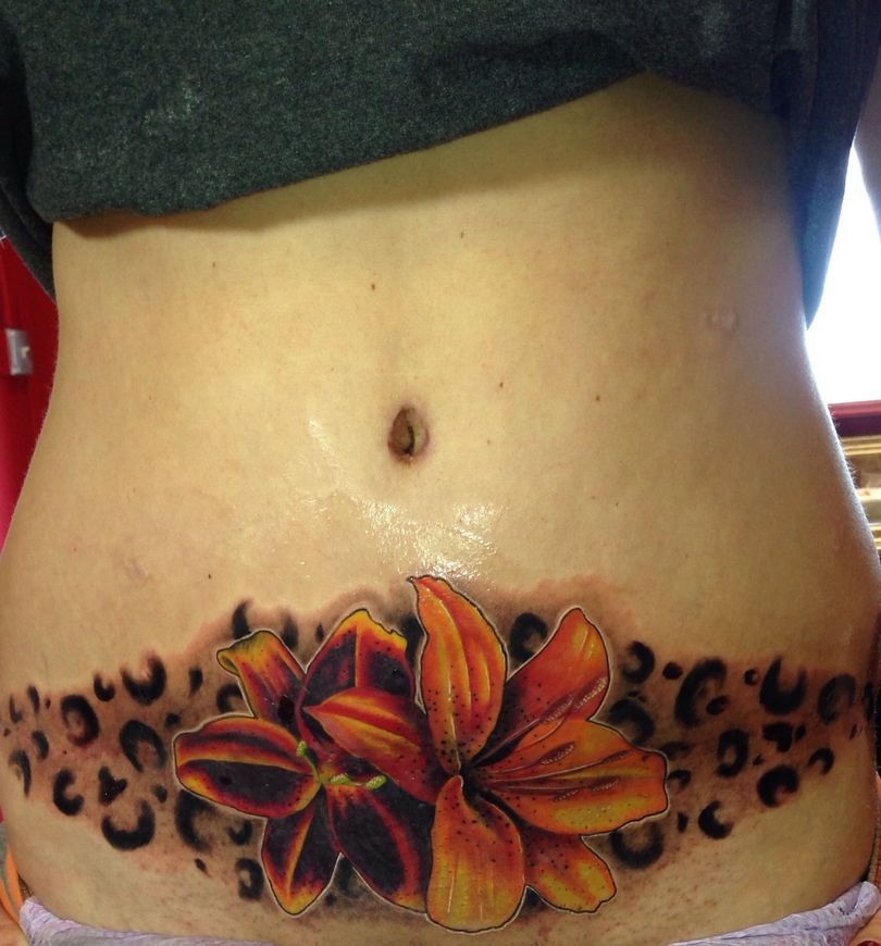 Si une fille a l'intention de peindre son bas-ventre avec de belles fleurs, cela aidera à cacher les vergetures après une césarienne ou une appendicite. Souvent, on demande aux filles de se faire peindre un motif floral pour refléter leur état spirituel :