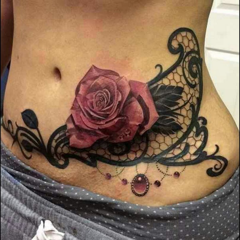Le corps féminin réagit aux tatouages de la même manière que le corps masculin. Cependant, si le but est de réaliser un croquis sur la zone de l'abdomen, il y a immédiatement un certain nombre d'aspects positifs et négatifs, qui seront affectés par une longue période de port d'un tatouage sous l'abdomen.
