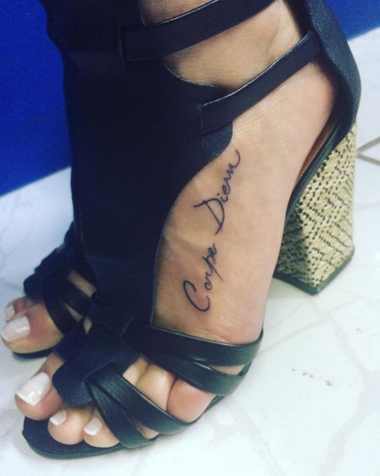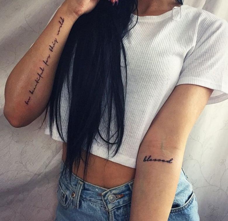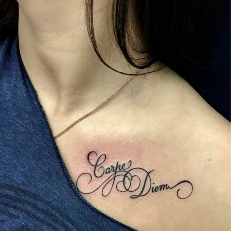 En tant que tels, les tatouages "modèles" avec des expressions n'existent pas, sauf, bien sûr, les phrases "Forever young" ou "Carpe Diem". À une époque, la popularité de ces inscriptions était telle qu'elle a créé un tollé.