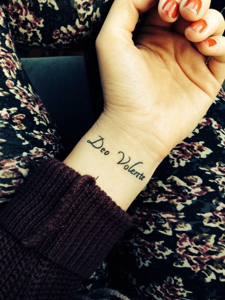 Un tatouage de cette phrase peut être placé n'importe où. N'importe quelle partie du corps peut être tatouée avec cette phrase. Les filles sont plus susceptibles de choisir la clavicule, le cou, les bras, les cuisses, la zone au-dessus et au-dessous des seins, les avant-bras ou les chevilles. Rarement, mais se produisent tatouage sur les côtes, cependant un tel tatouage est choisi par les filles courageuses, de faire un tatouage sur les côtes plutôt processus douloureux.
