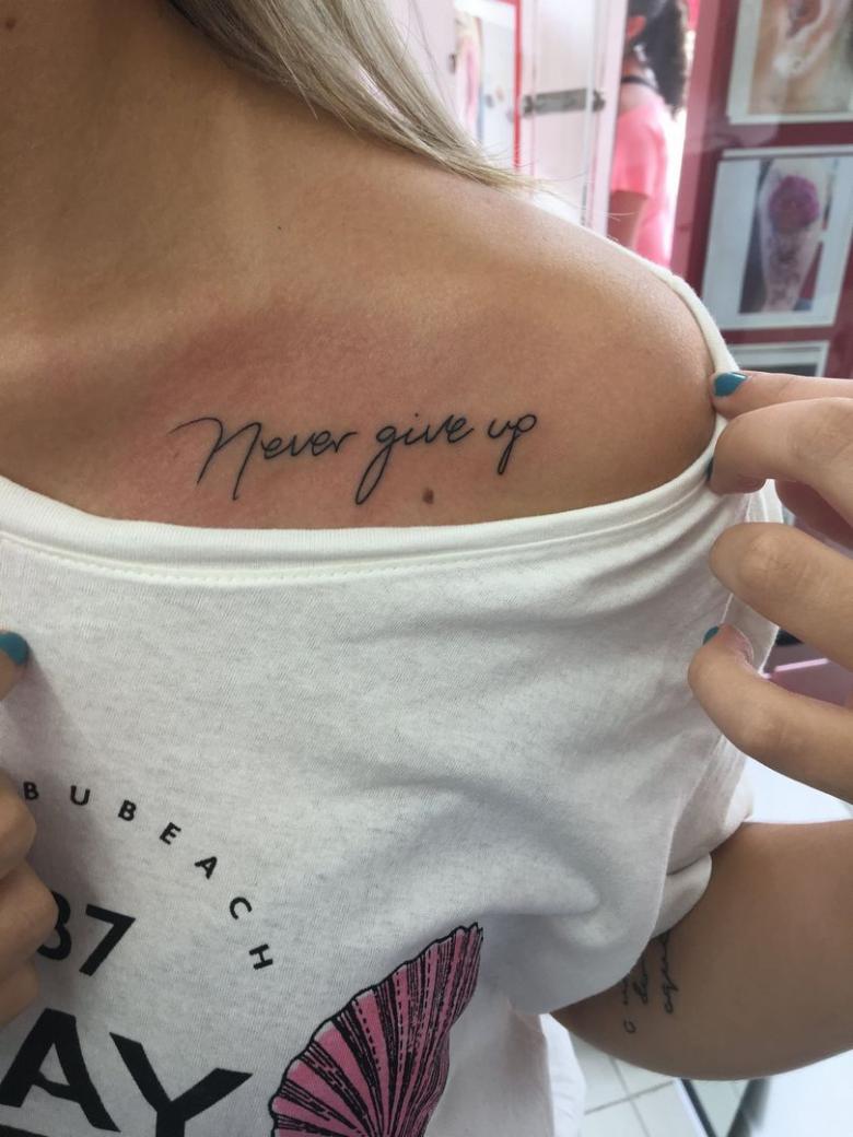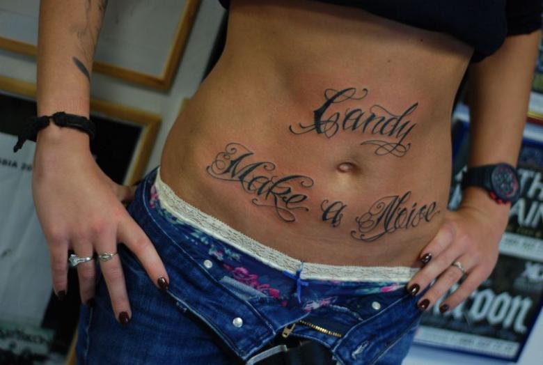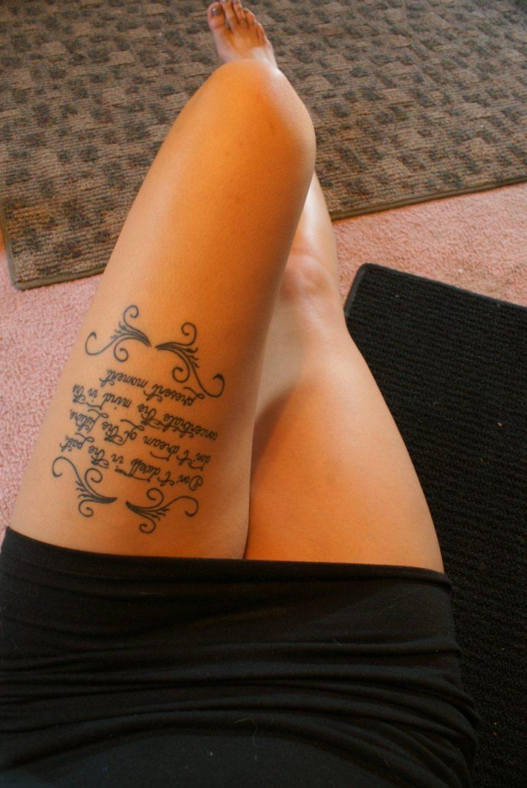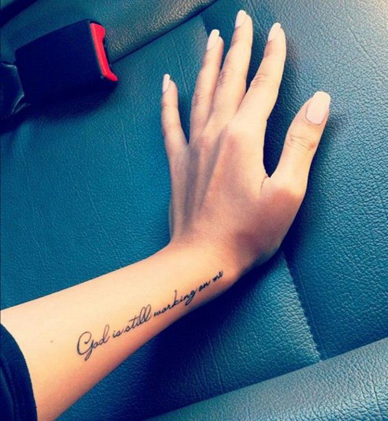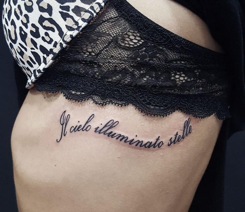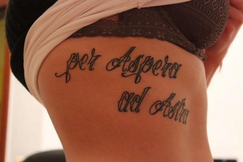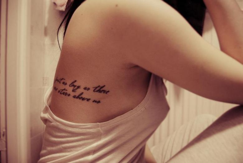 Un tatouage avec une citation convient à toutes les filles, chaque représentante féminine de la belle moitié de l'humanité peut supporter le processus de tatouage avec dignité tout à fait sans douleur, car l'inscription ne prend pas beaucoup de place et ne nécessite pas beaucoup de temps pour le processus. L'inscription est souvent le premier tatouage de presque toutes les filles.