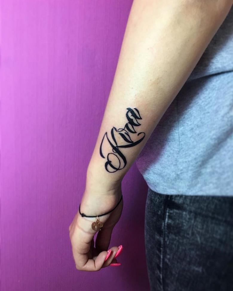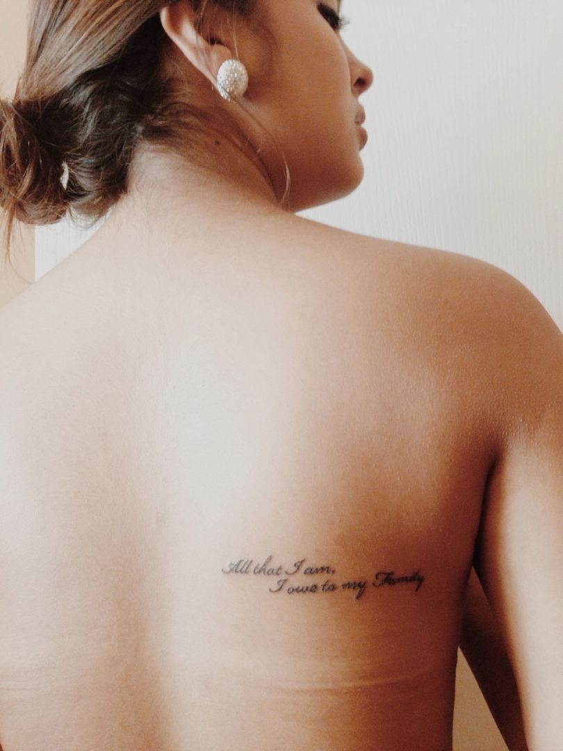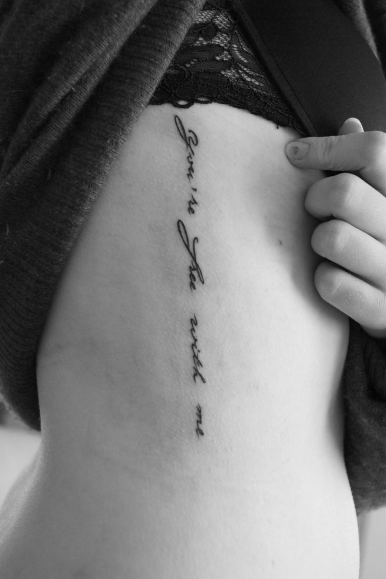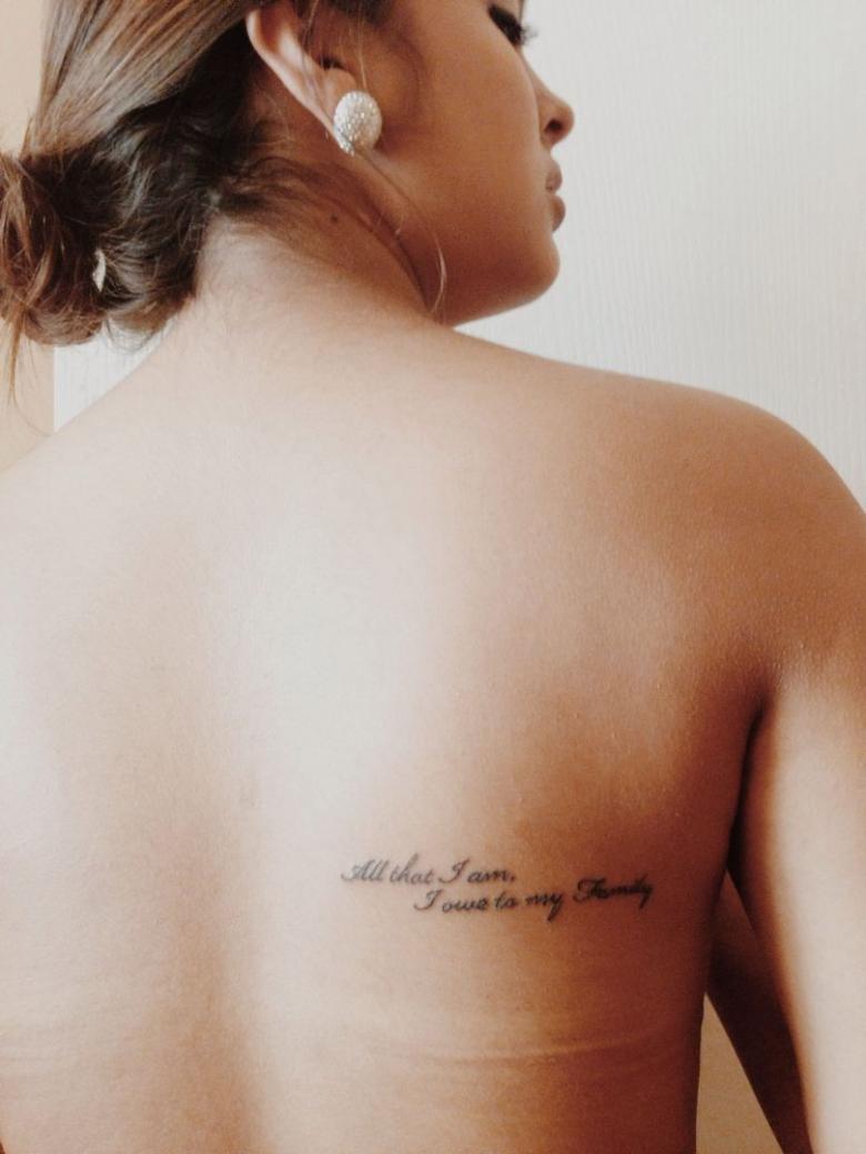 Un tatouage avec une citation convient à toutes les filles, chaque représentante féminine de la belle moitié de l'humanité peut supporter le processus de tatouage avec dignité tout à fait sans douleur, car l'inscription ne prend pas beaucoup de place et ne nécessite pas beaucoup de temps pour le processus. L'inscription est souvent le premier tatouage de presque toutes les filles.