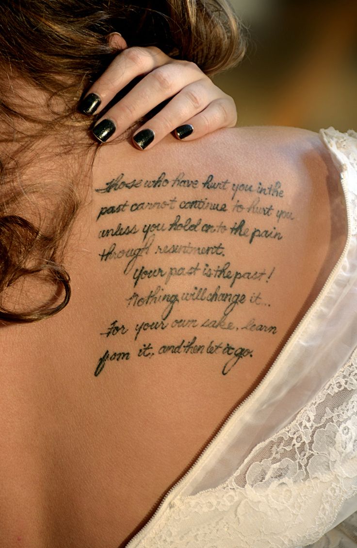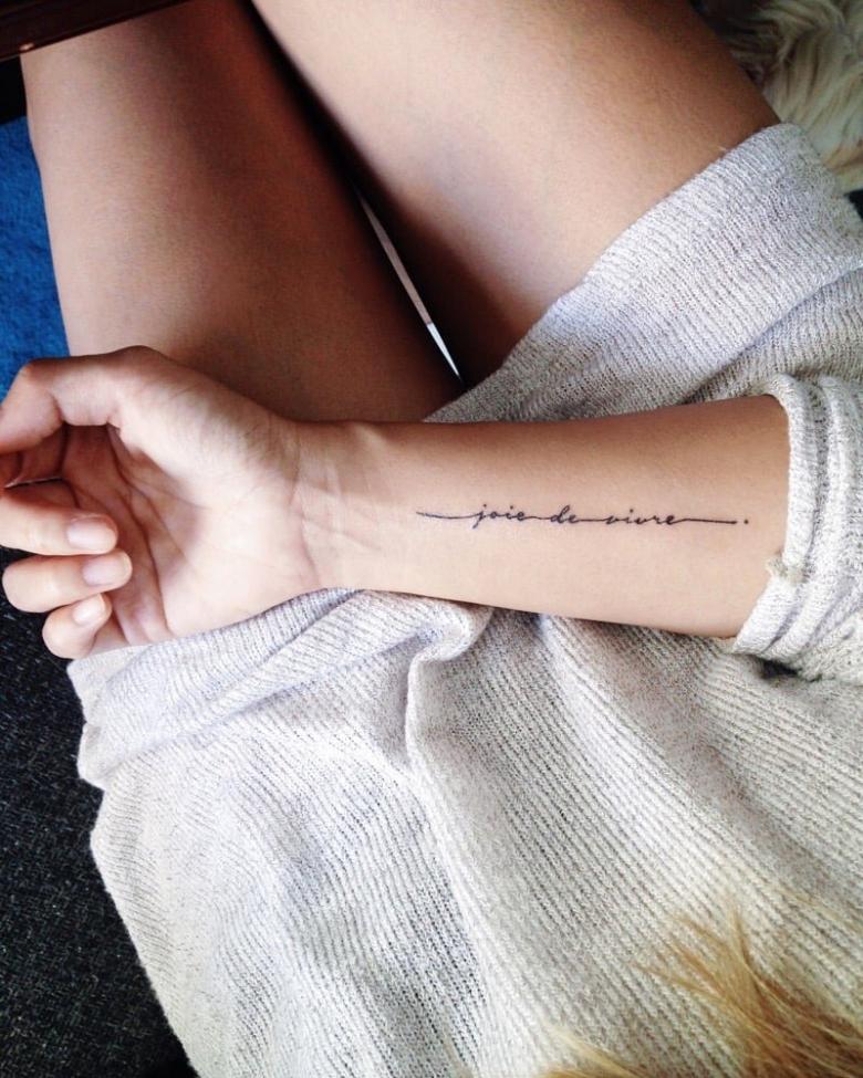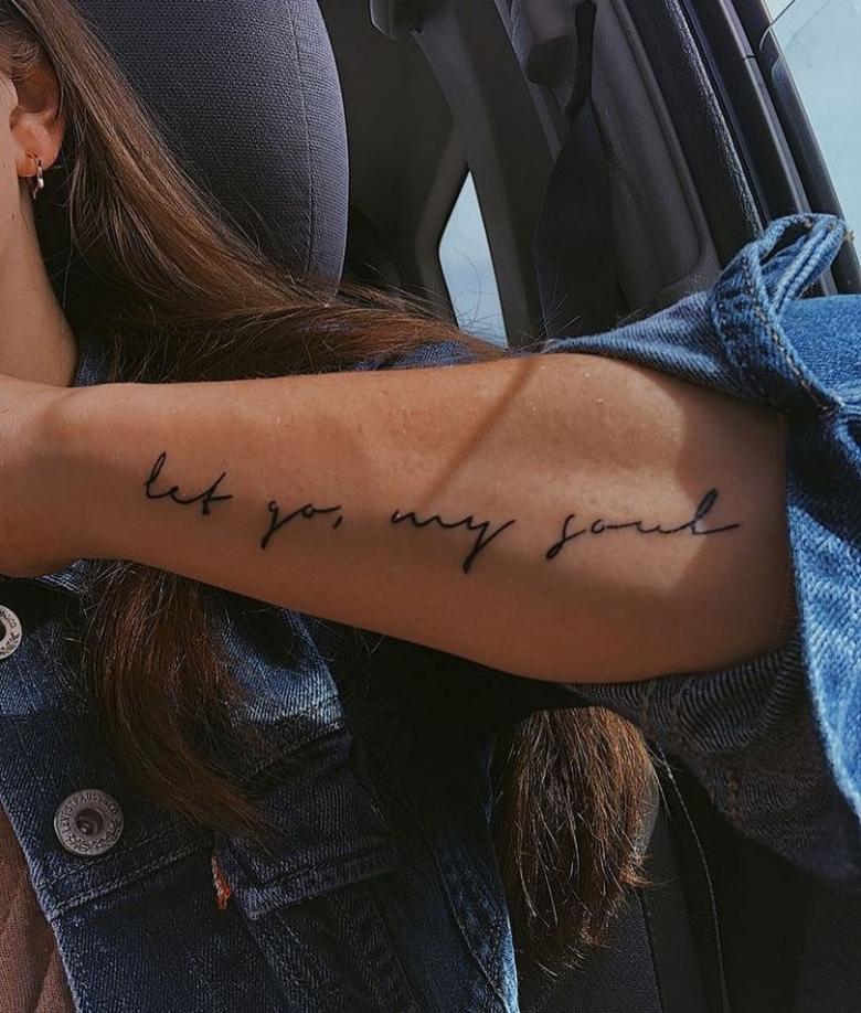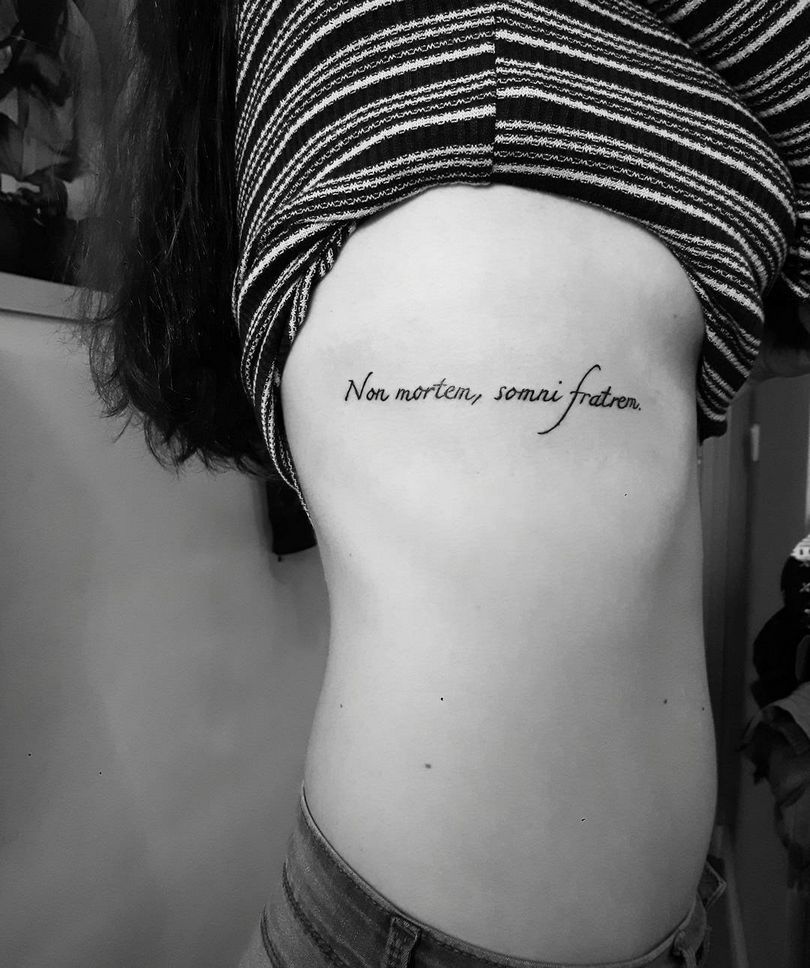 Et l'une des caractéristiques des tatouages d'inscription est la possibilité de traduire une citation très courante dans une langue particulière. Vous pouvez le traduire dans une langue moins populaire, et s'il sonne bien et est magnifiquement écrit, vous pouvez utiliser une autre langue. Cela donnera de l'originalité à un tatouage déjà populaire mais que vous serez le seul à avoir - du moins au début.