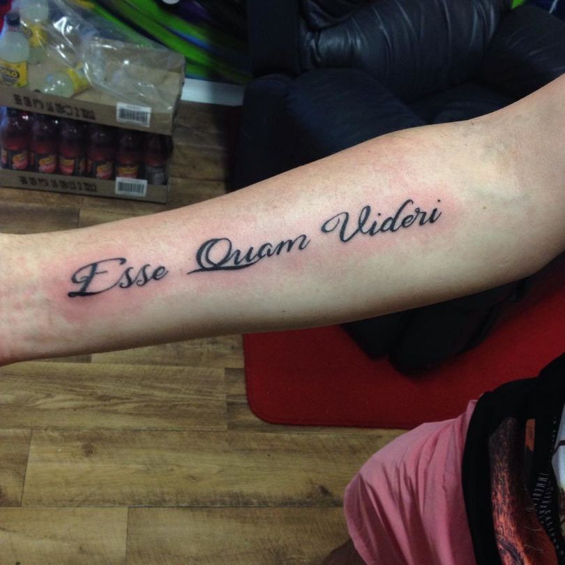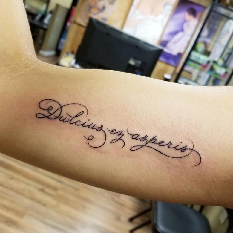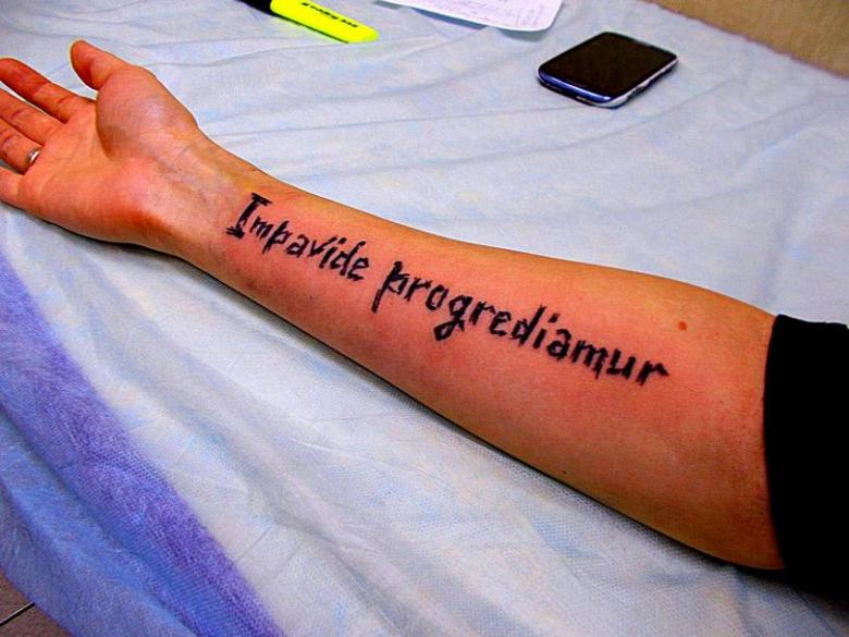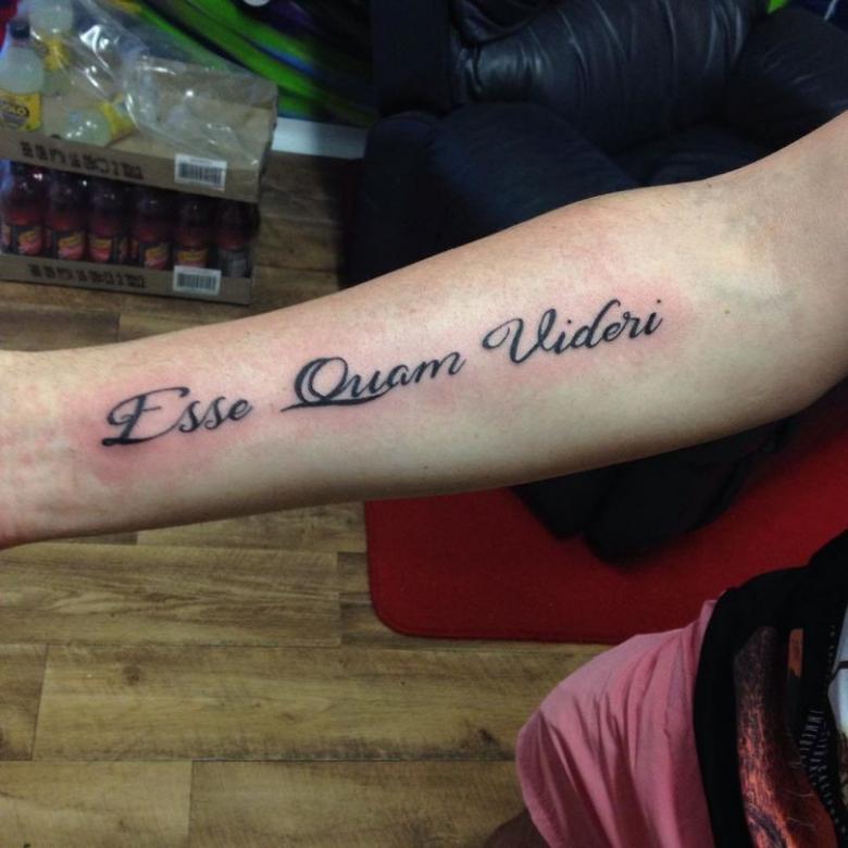 N'oubliez pas de vérifier le portfolio du maître au studio. Chaque salon est visité par des personnes qui ont probablement commandé une inscription de tatouage en latin. Mais pour faire face à l'application du texte sur les langues anciennes ne peut pas tout le monde. L'accent est mis ici sur l'attention, l'alphabétisation, la précision et l'exactitude.