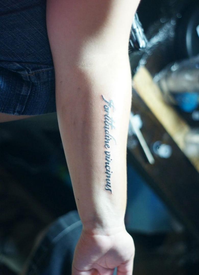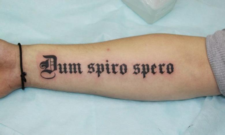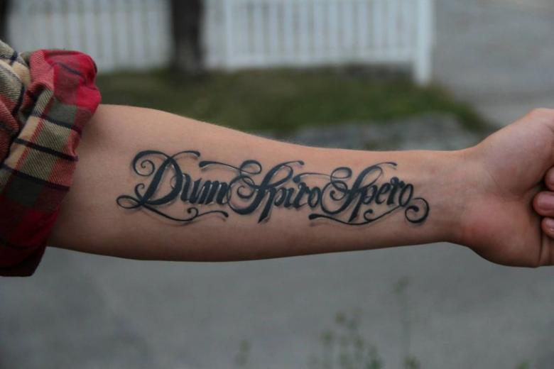 Inscriptions de tatouage en latin - l'endroit pour l'application sur le bras, la clavicule, l'avant-bras, le dos, des exemples d'inscriptions avec la traduction, des photos cool.
