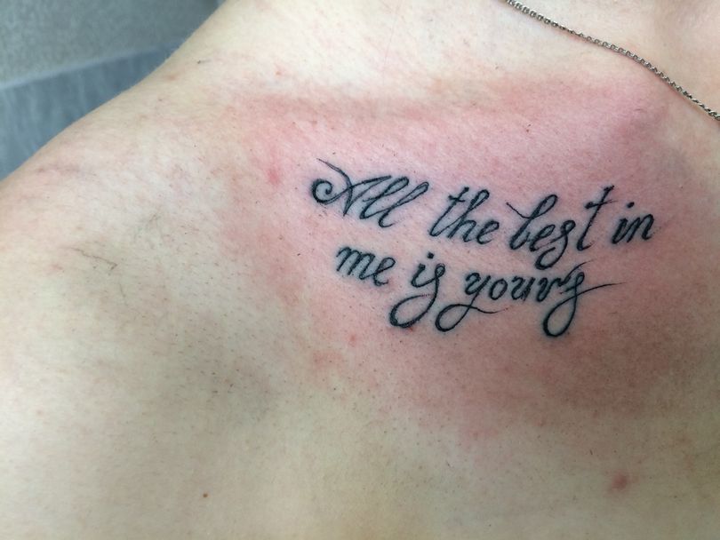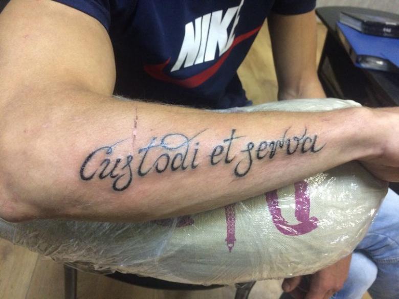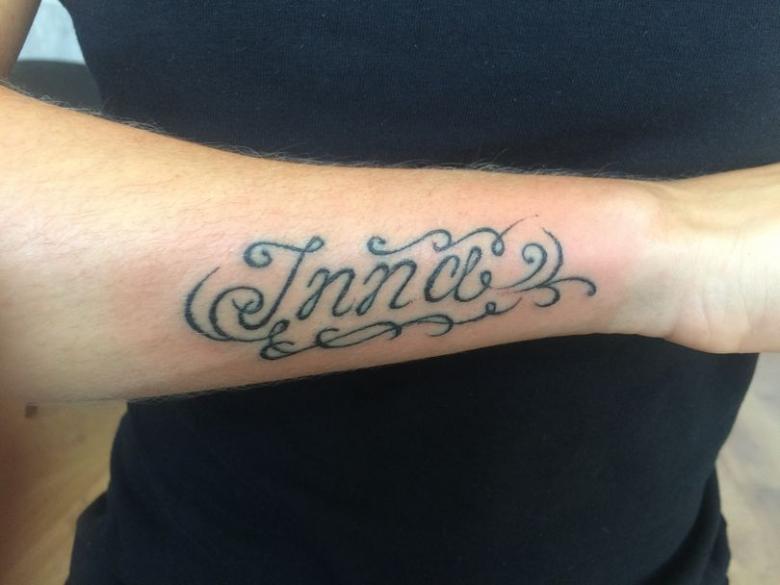 - L'inscription du tatouage en latin est recouverte d'un film pour éviter que la plaie ne se dessèche et ne s'infecte. Le bandage peut être retiré après 3-4 heures.