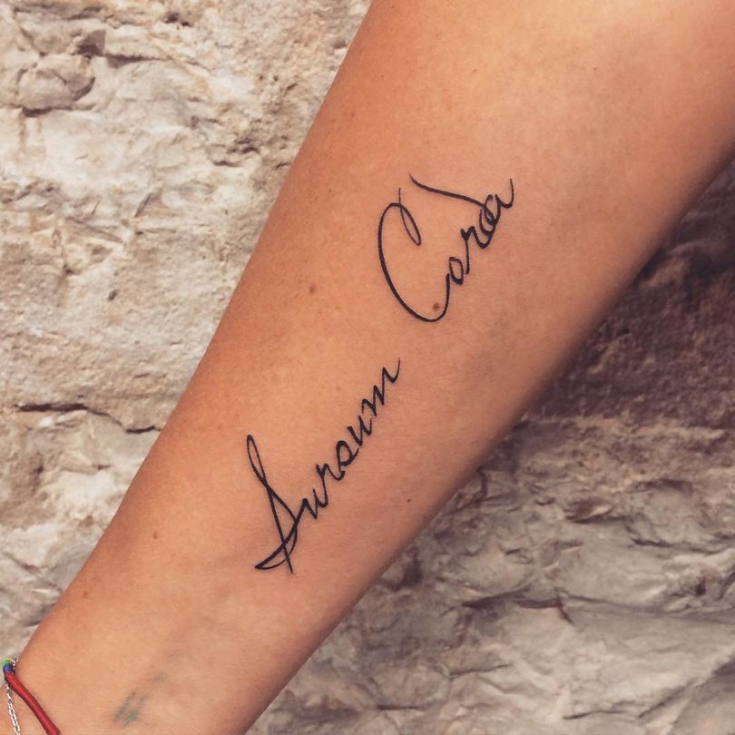 Les inscriptions de tatouage en latin sont décorées de diverses manières, tout dépend de la signification du dicton, de sa taille. Les options de conception sont nombreuses :