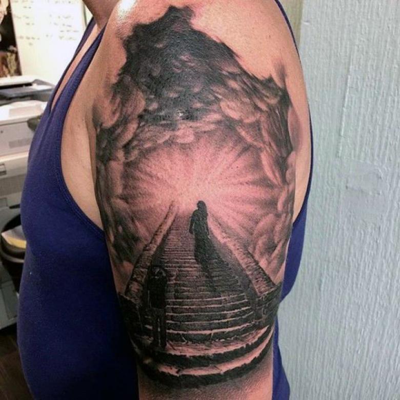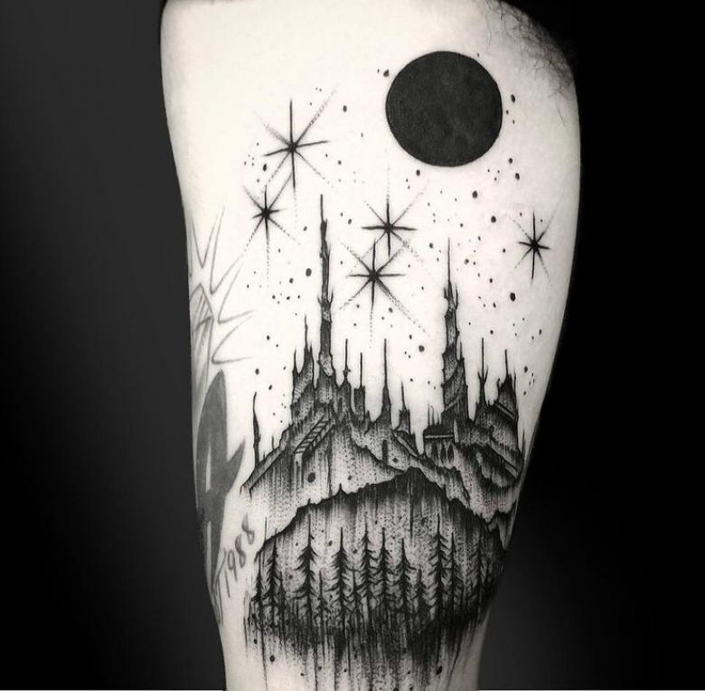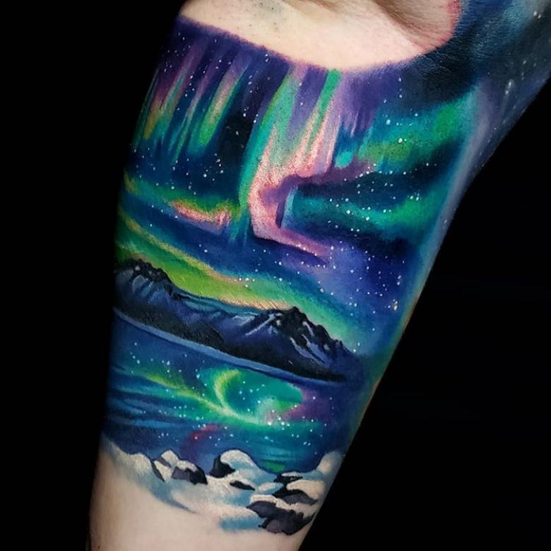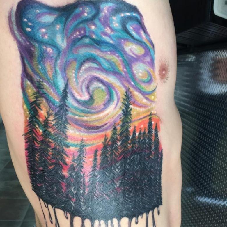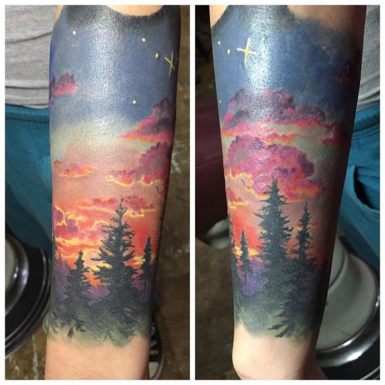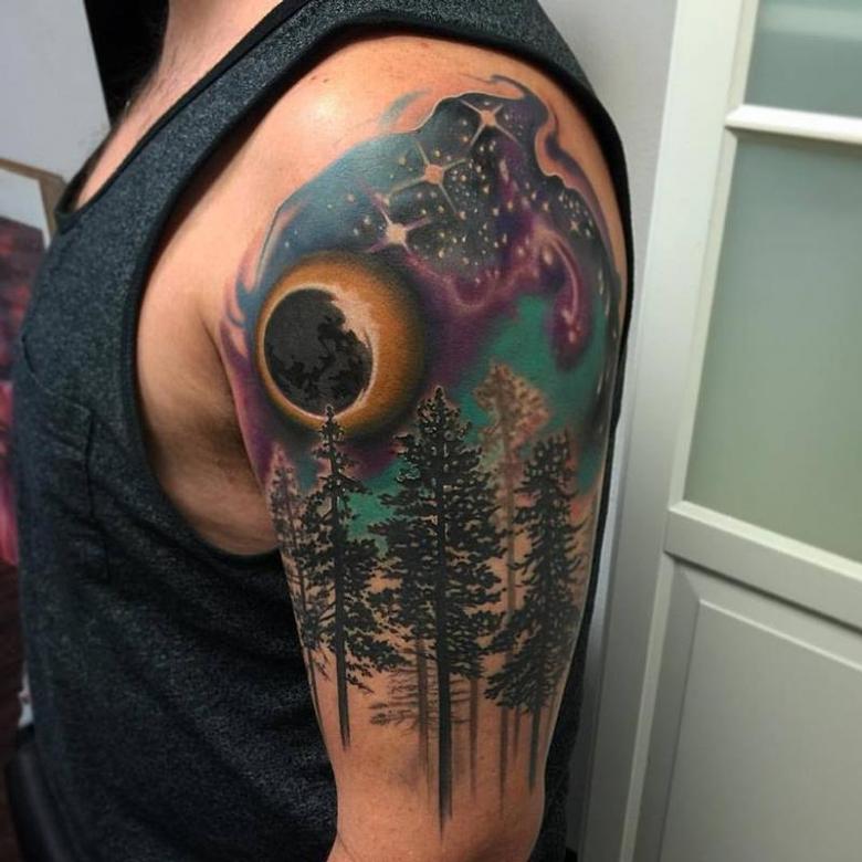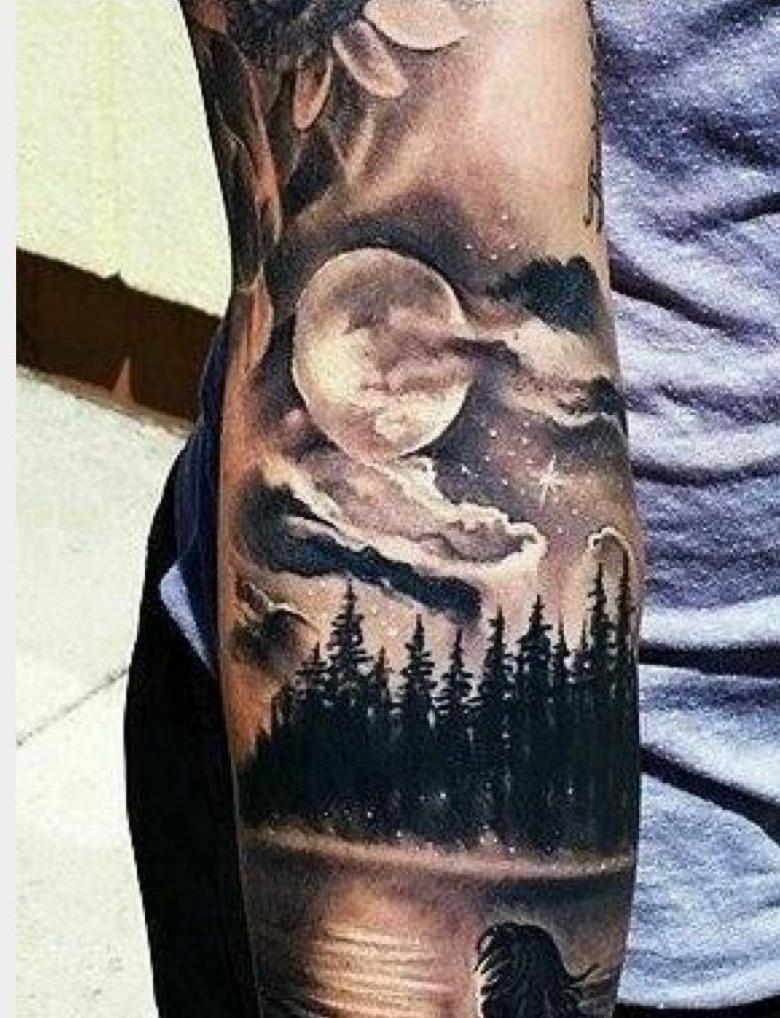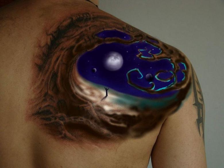 A toutes les époques, le ciel a symbolisé l'éternité. Chaque étoile qui s'y trouve indique davantage la fortune du voyage de la vie. Mais il ne faut pas oublier que l'esquisse sur le poignet renvoie son porteur à des personnes dont l'orientation n'est pas conventionnelle. Le ciel étoilé sur le dos et les petites étoiles attrayantes sur l'avant-bras ont un aspect unique.