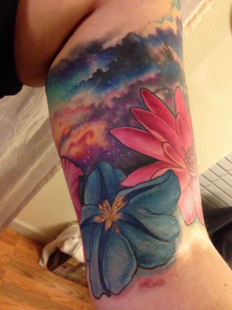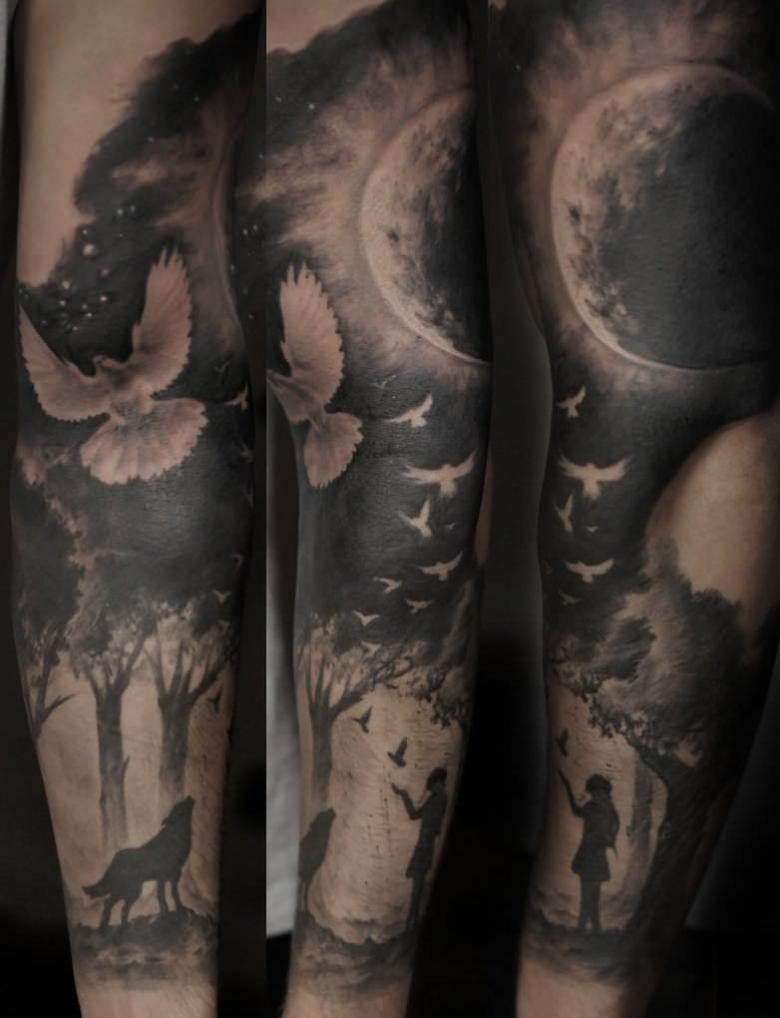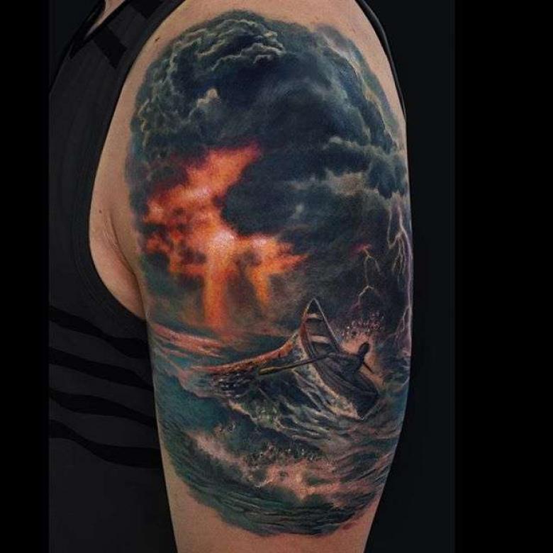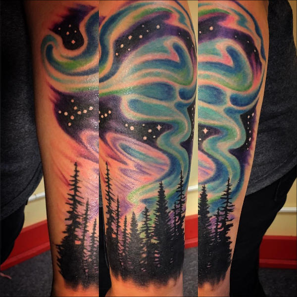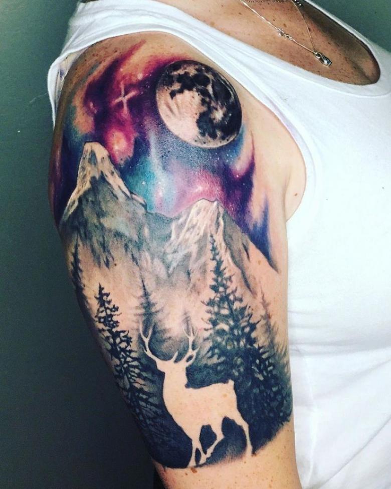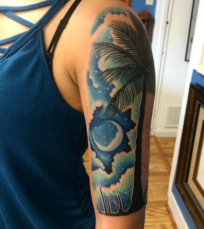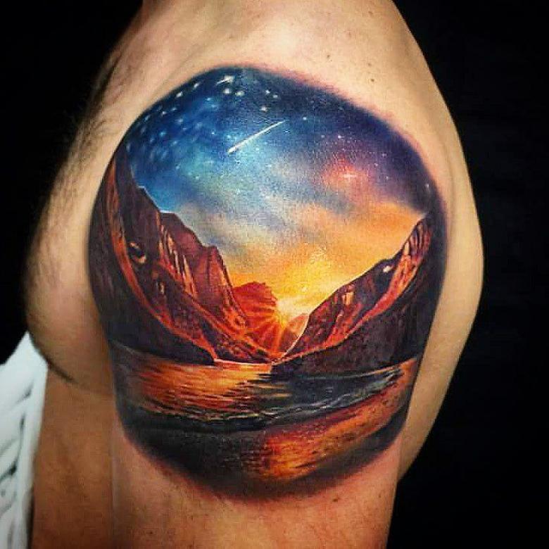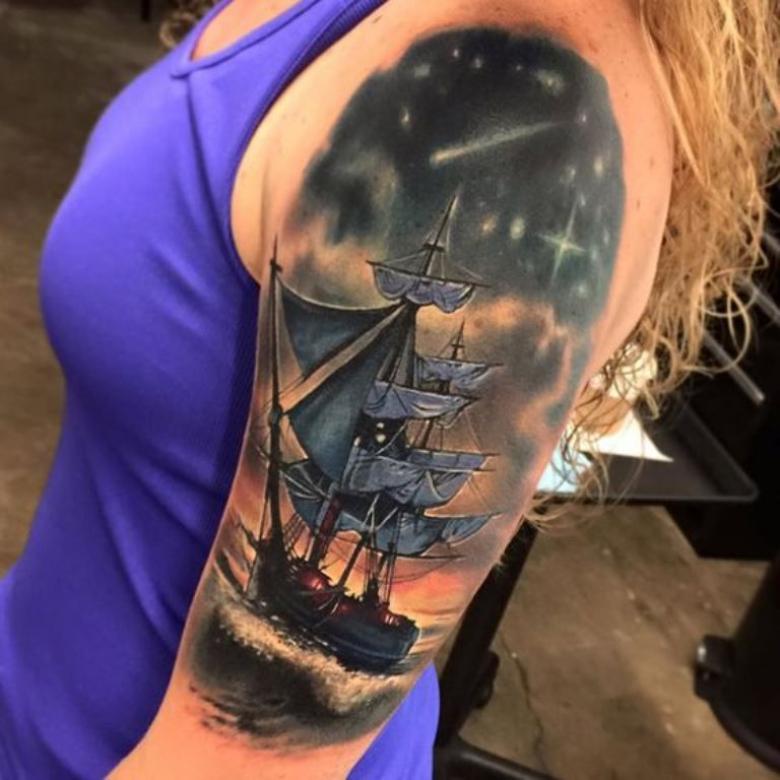 A toutes les époques, le ciel a symbolisé l'éternité. Chaque étoile qui s'y trouve indique davantage la fortune du voyage de la vie. Mais il ne faut pas oublier que l'esquisse sur le poignet renvoie son porteur à des personnes dont l'orientation n'est pas conventionnelle. Le ciel étoilé sur le dos et les petites étoiles attrayantes sur l'avant-bras ont un aspect unique.
