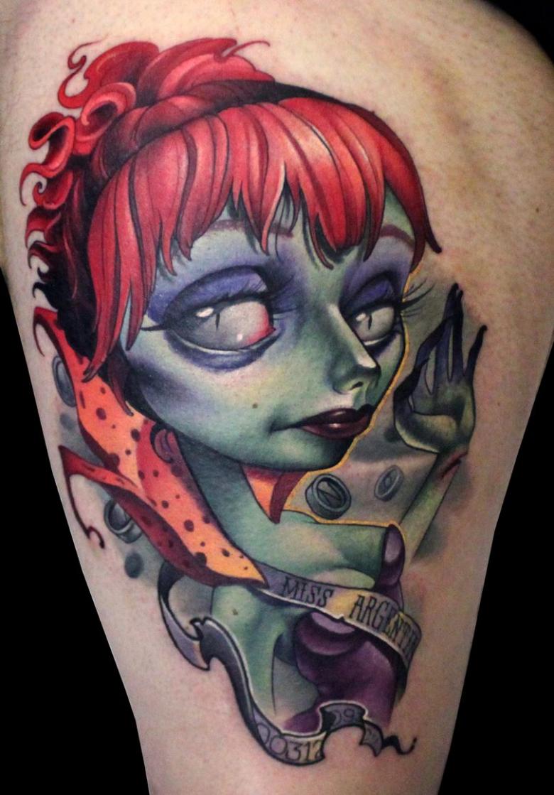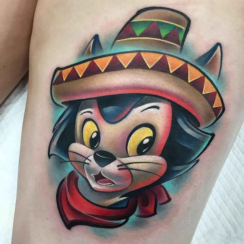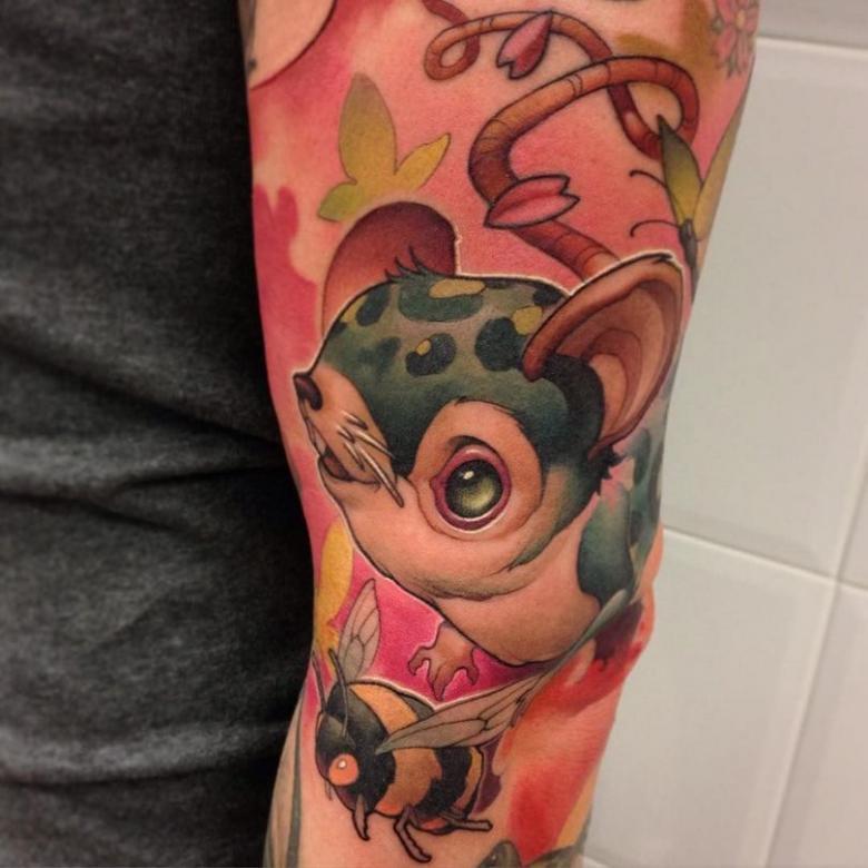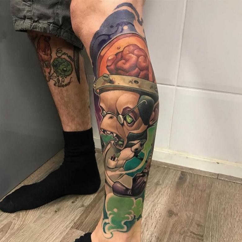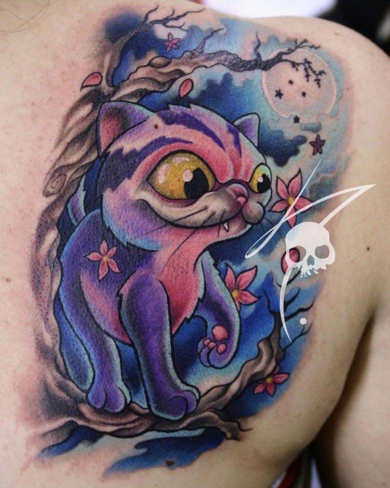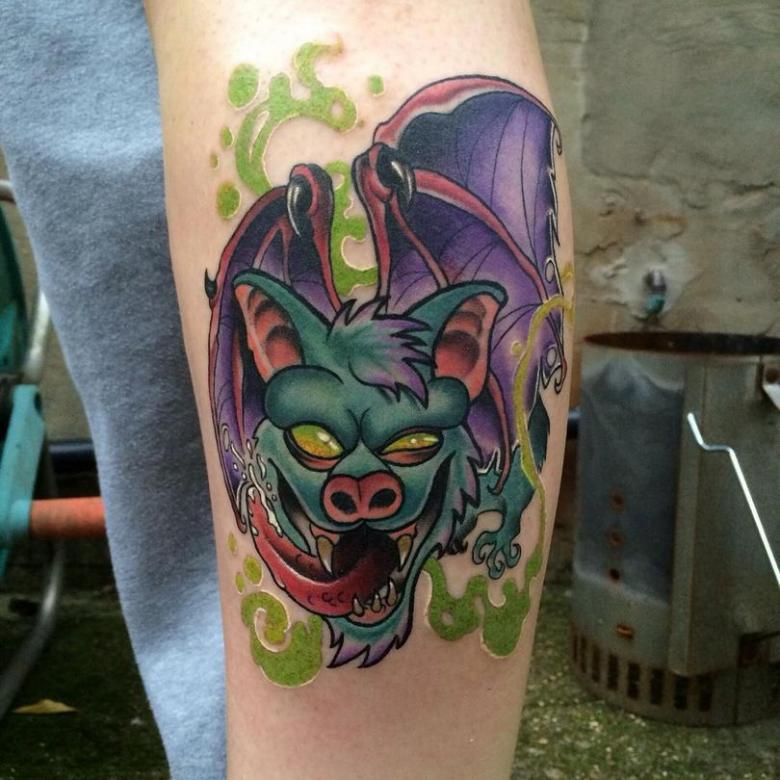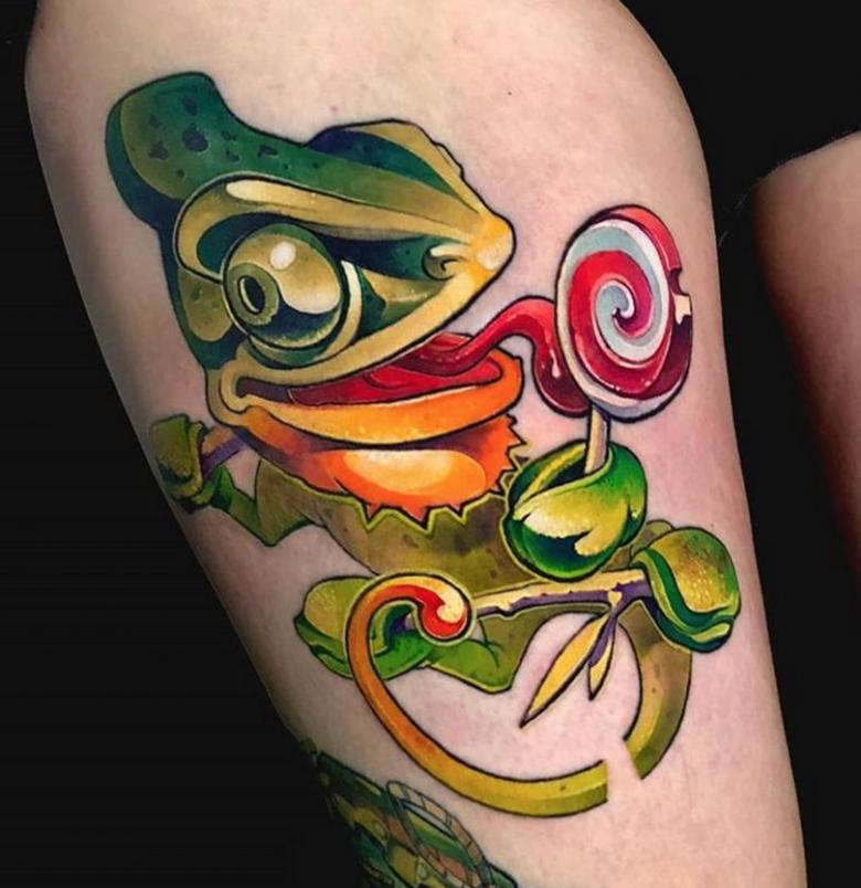 Les tatouages réalistes de la vieille école ont été remplacés par des dessins colorés de créatures fantastiques, de personnages de films et de jeux et d'autres personnages célèbres. Au début, les tatouages dans ce sens étaient simples et même banals, mais très vite ils ont progressé et se sont développés. Aujourd'hui, ce mouvement de la nouvelle école est le plus populaire.