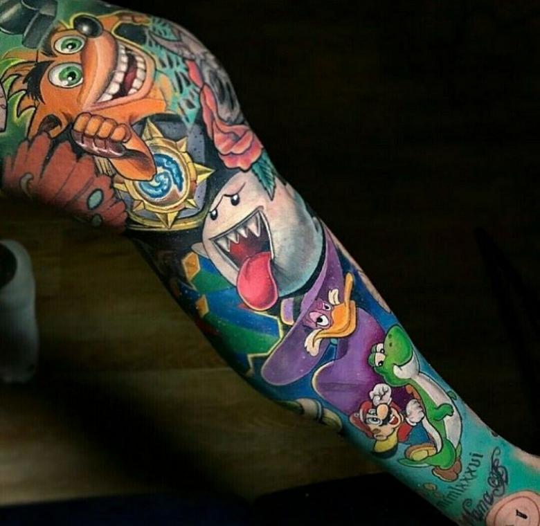 Les hommes adorent se faire tatouer des personnages célèbres, notamment ceux des jeux vidéo. Mais il convient de noter que tout cela est individuel. Certains commandent des images lumineuses et provocantes aux couleurs acidulées, d'autres sont sombres et brutales et parfois même glauques. L'une des plus grandes tendances chez les hommes est devenue le marquage d'un bras entier, qui consiste en de nombreux tatouages différents.