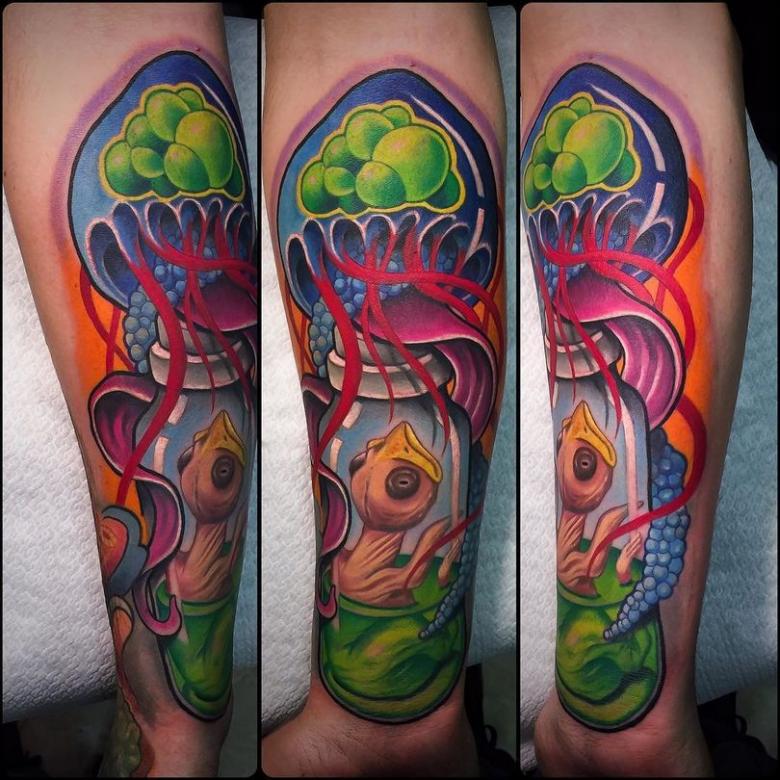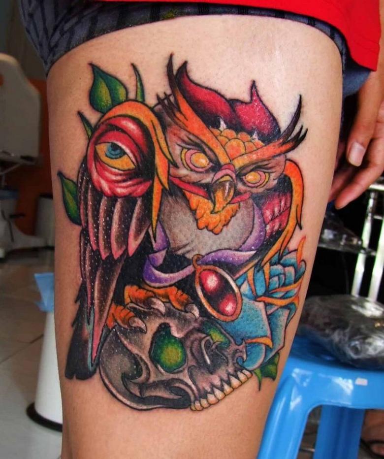 En même temps, grâce à ses couleurs vives et saturées, c'est un excellent moyen de refaire des tentatives de tatouage ratées. Grâce à la grande abondance de couleurs, il est possible de recouvrir un vieux dessin ou un dessin déjà ennuyeux. De même, si une personne a des cicatrices, des brûlures ou d'autres imperfections sur le corps, c'est un excellent moyen de les égayer avec un tatouage lumineux et attrayant.