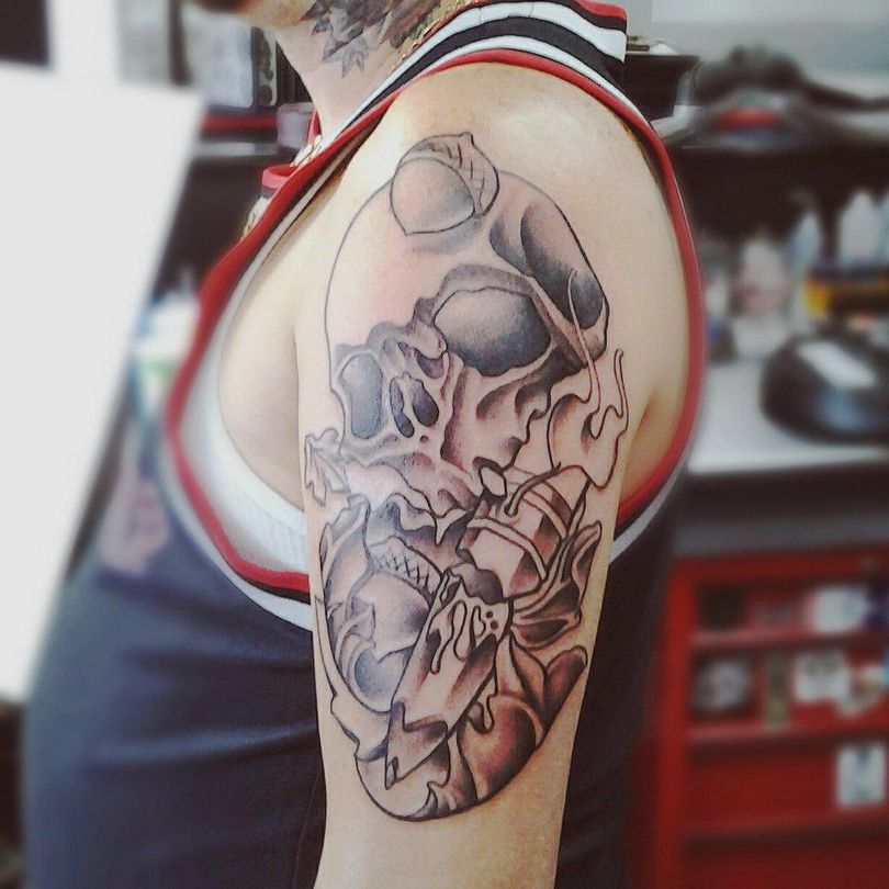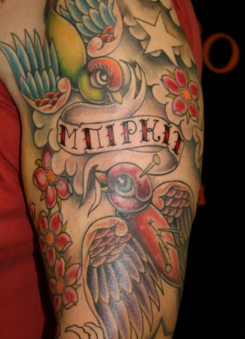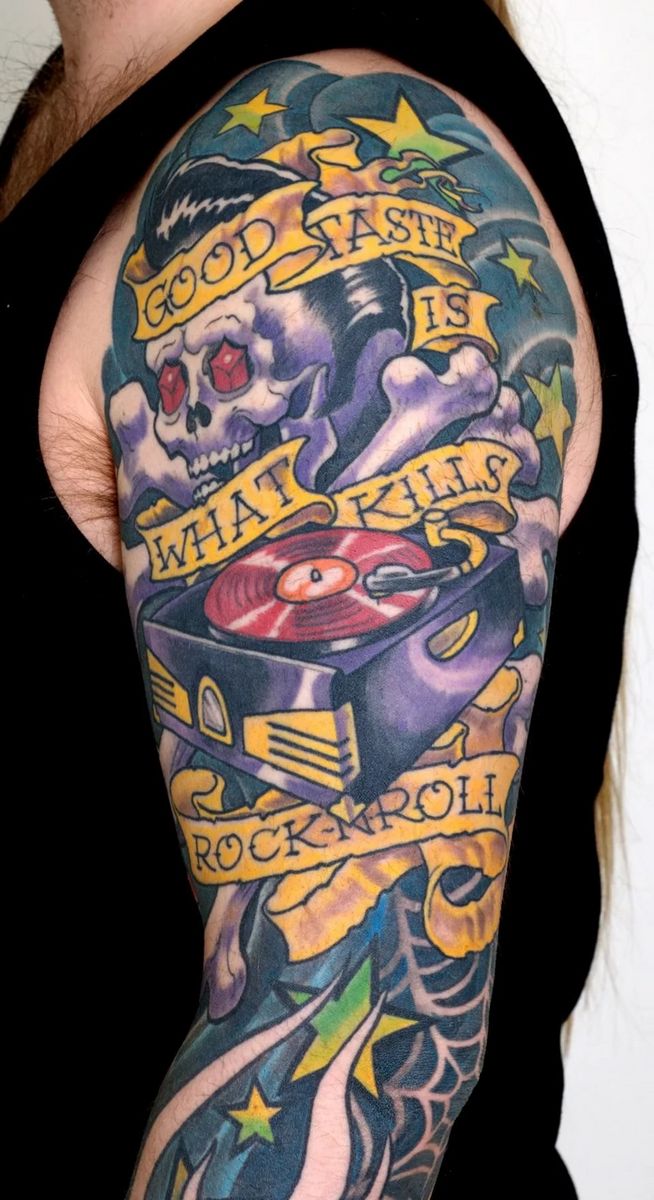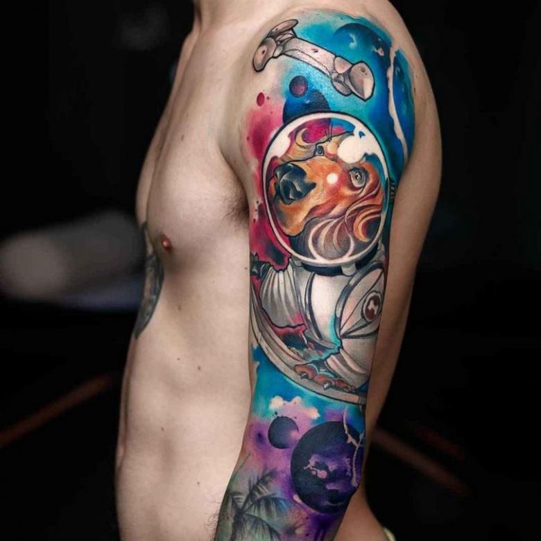 Mais chez les fans qui veulent remplir leurs manches, la tendance est à un dessin composé de tatouages de petite et moyenne taille. Il est assez inhabituel et attrayant.