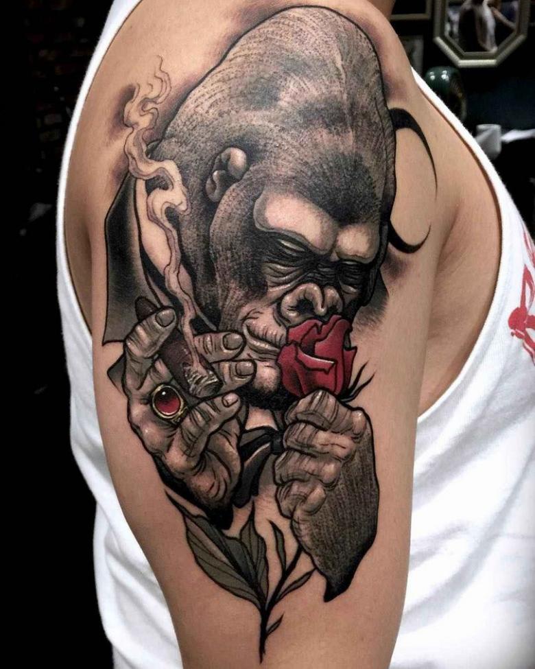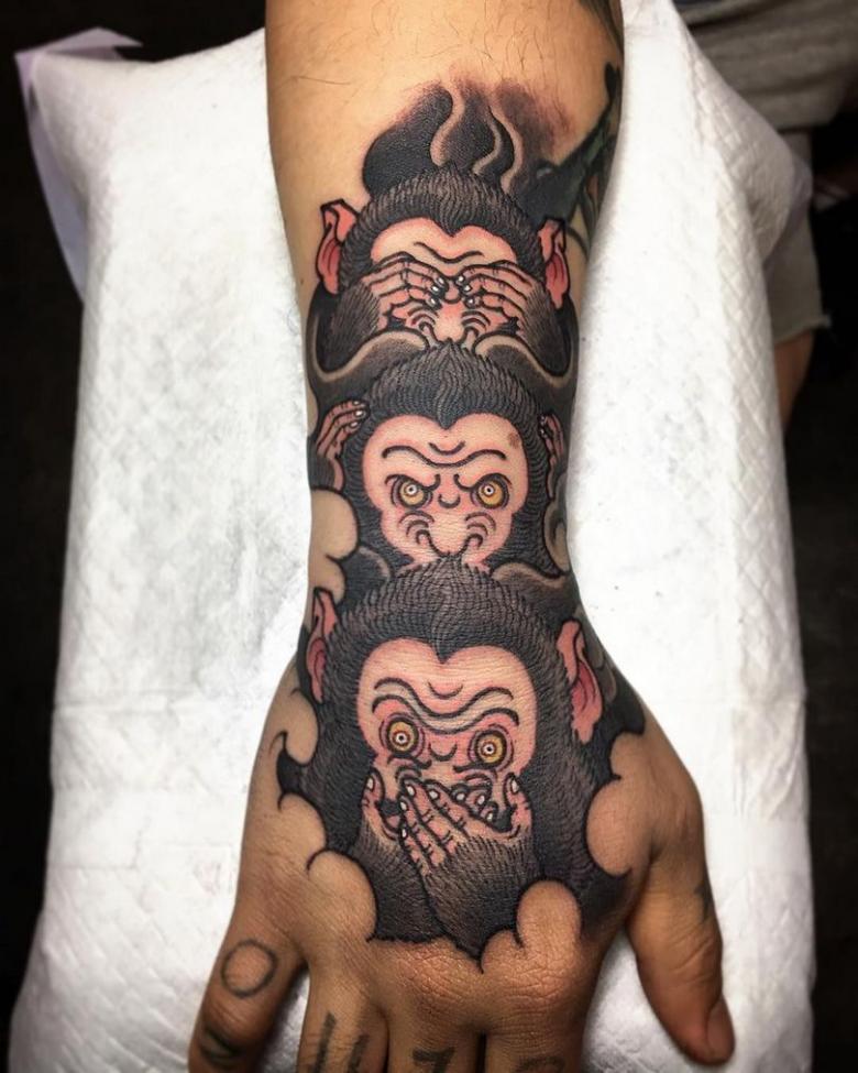 En général, la valeur du singe en tant que tatouage dépend directement du type de primate représenté, du style et, parfois, de la partie du corps.