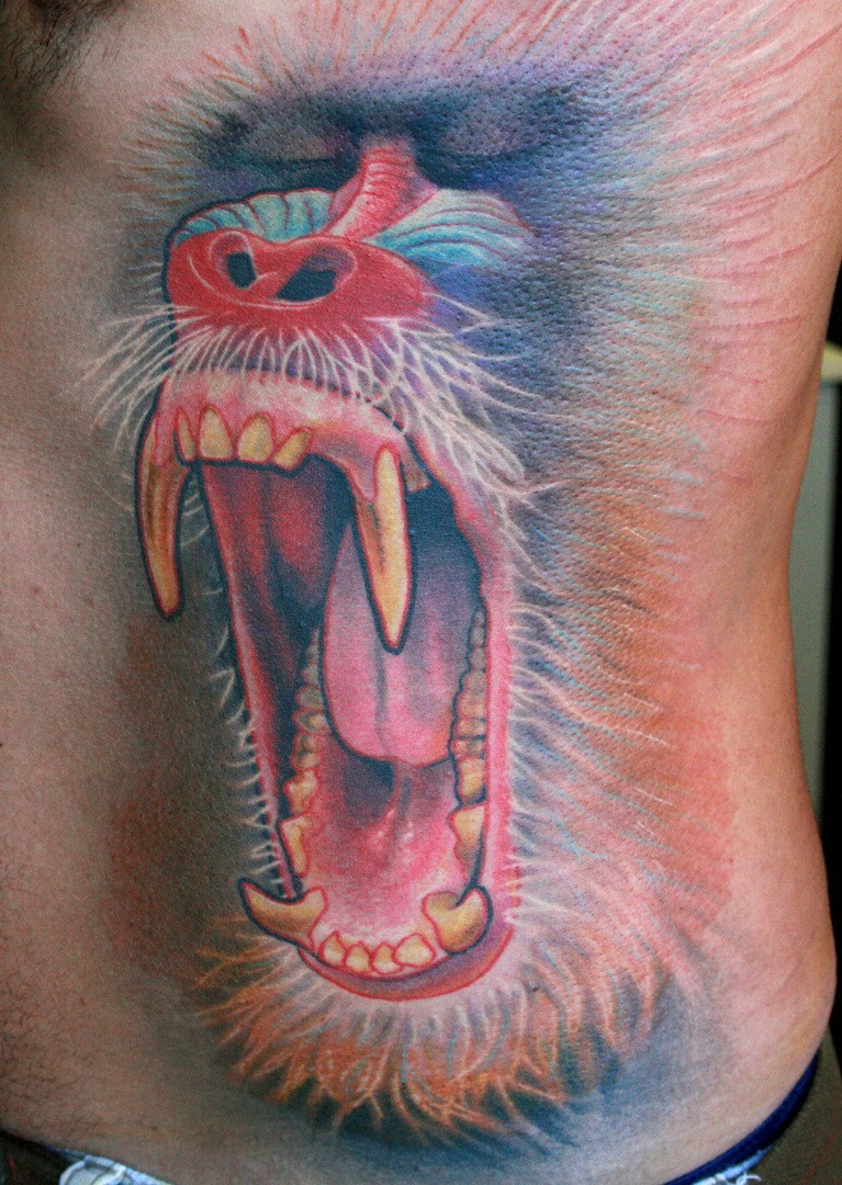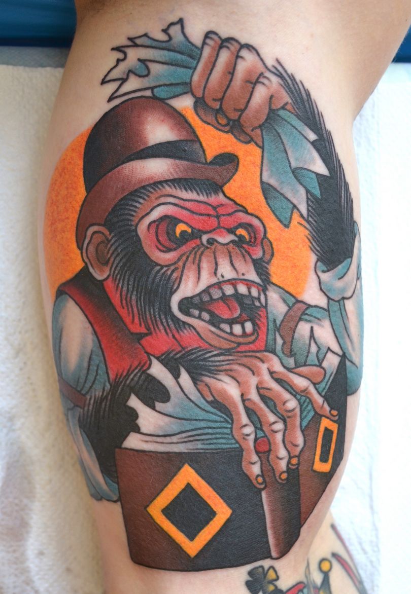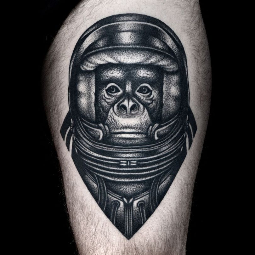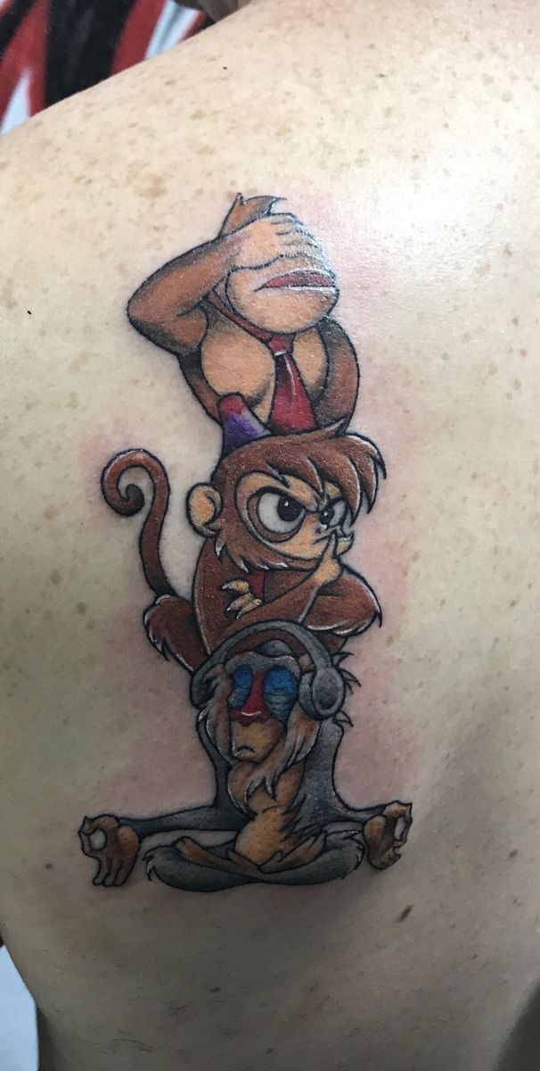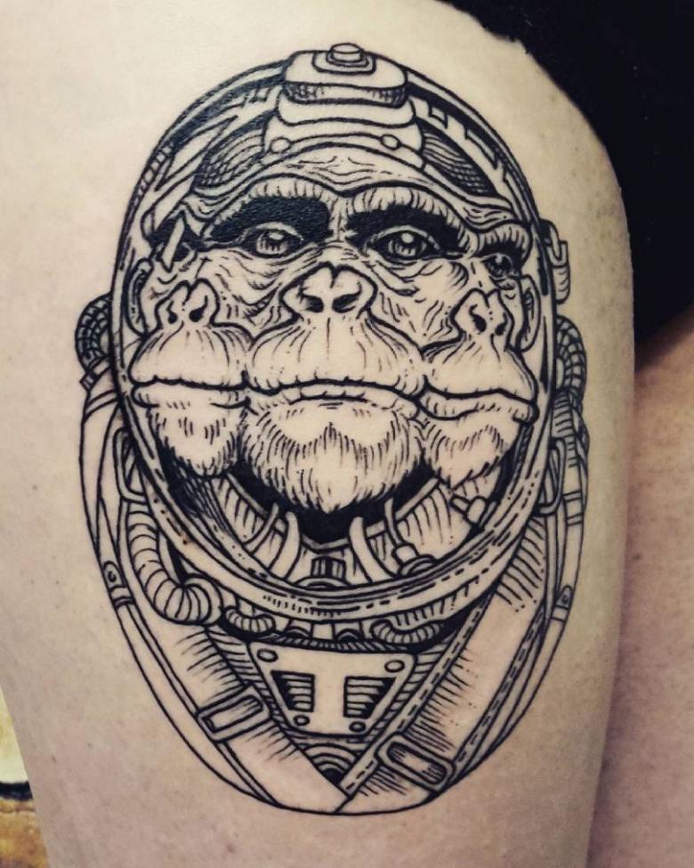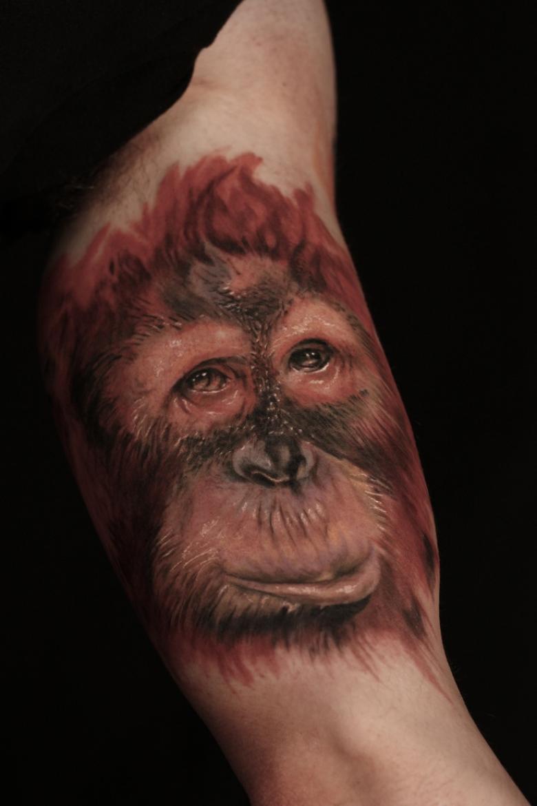 Les zones populaires pour les tatouages de singe sont : le dos, l'épaule, l'avant-bras, la cuisse. Parfois, ils sont même faits sur le ventre.