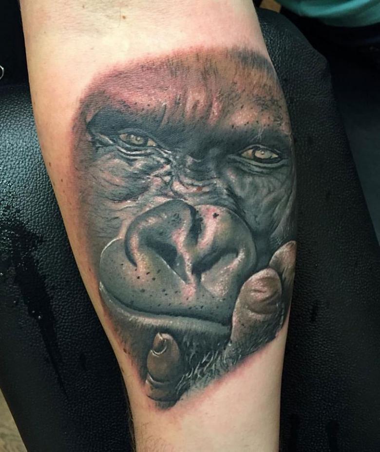 Il n'est pas rare que l'on demande à un tatoueur de dessiner un gorille. Ce n'est pas un hasard. Ce type de primate est très évolué. Les gorilles ont un esprit curieux, capable d'apprendre. C'est aussi leur caractéristique et la persévérance, elle aide le gorille à atteindre son but.