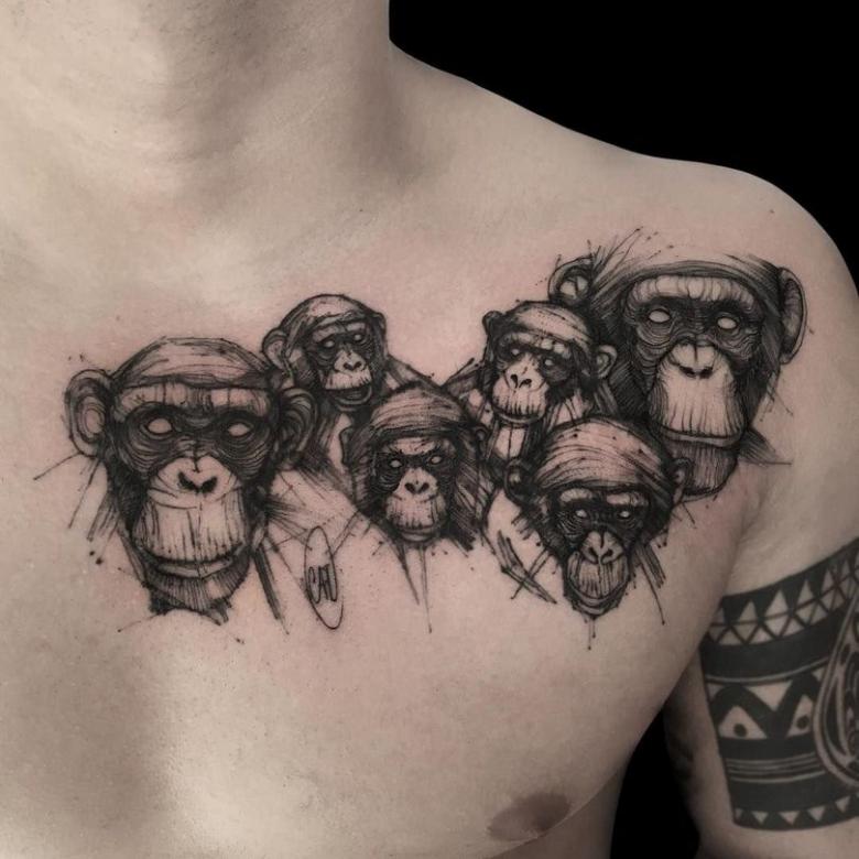 Tattoo Monkey - description complète, croquis pour hommes et femmes, où placer l'image, photos originales.