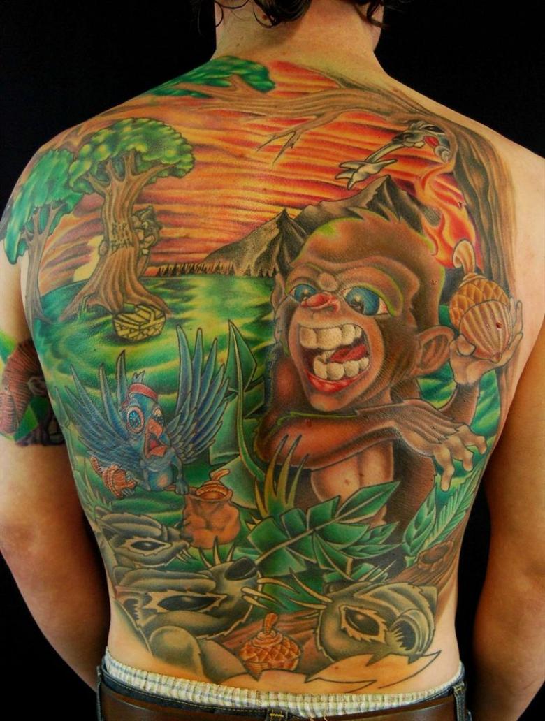 Le roi des singes est une autre image populaire pour les tatouages. Il est basé sur l'image de Hanuman, un dieu patron de la famille en Inde. Une personne qui a l'image d'Hanuman sur son dos - dévouée à sa famille et engagée dans la fidélité et la préservation des valeurs familiales. Mais la raison d'un tel tatouage peut aussi être une passion de son propriétaire pour les films d'animation.