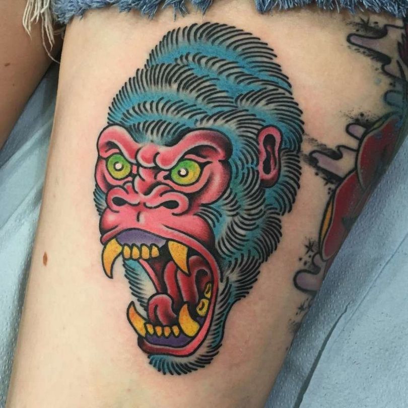 Le tatouage d'un gorille pacifique est synonyme d'un tempérament paisible et d'une grande intelligence. En revanche, si le gorille sur le tatouage est agressif, cela signifie que le porteur est méfiant et qu'il réagira de manière assez agressive aux stimuli extérieurs.