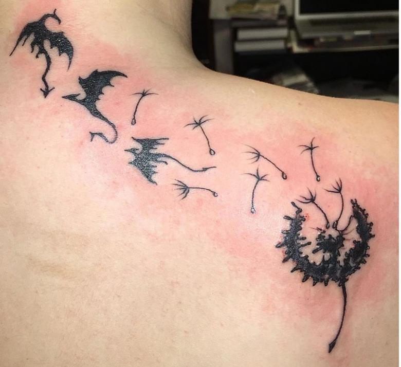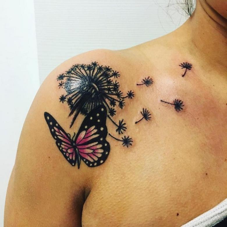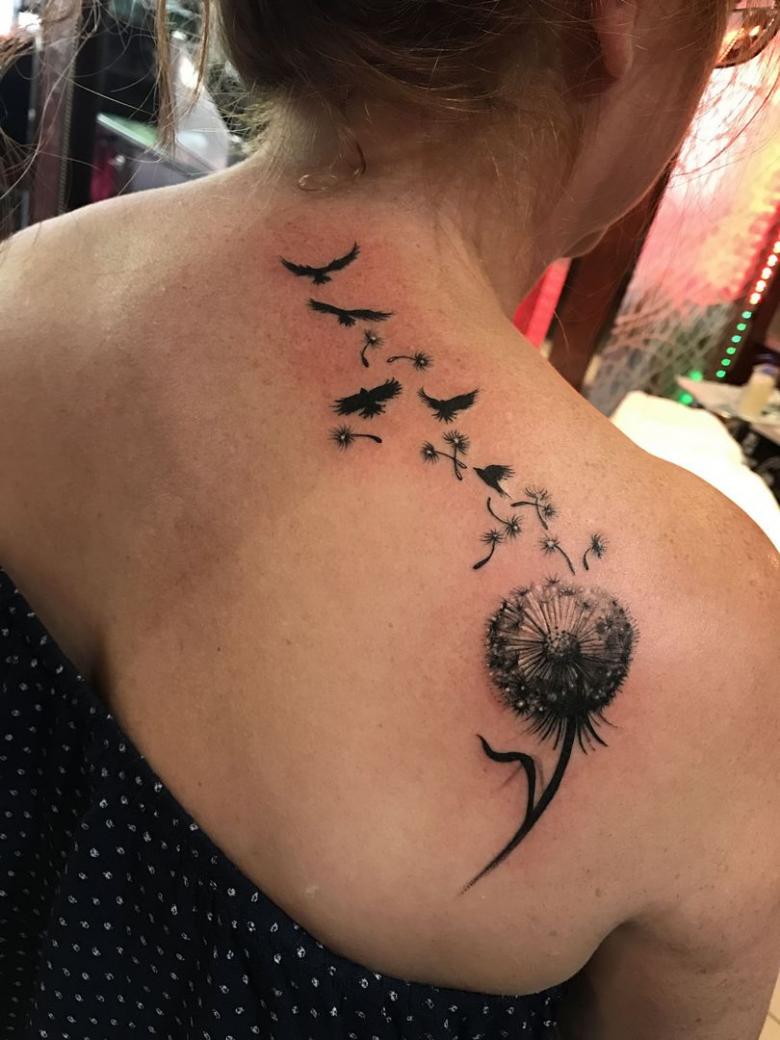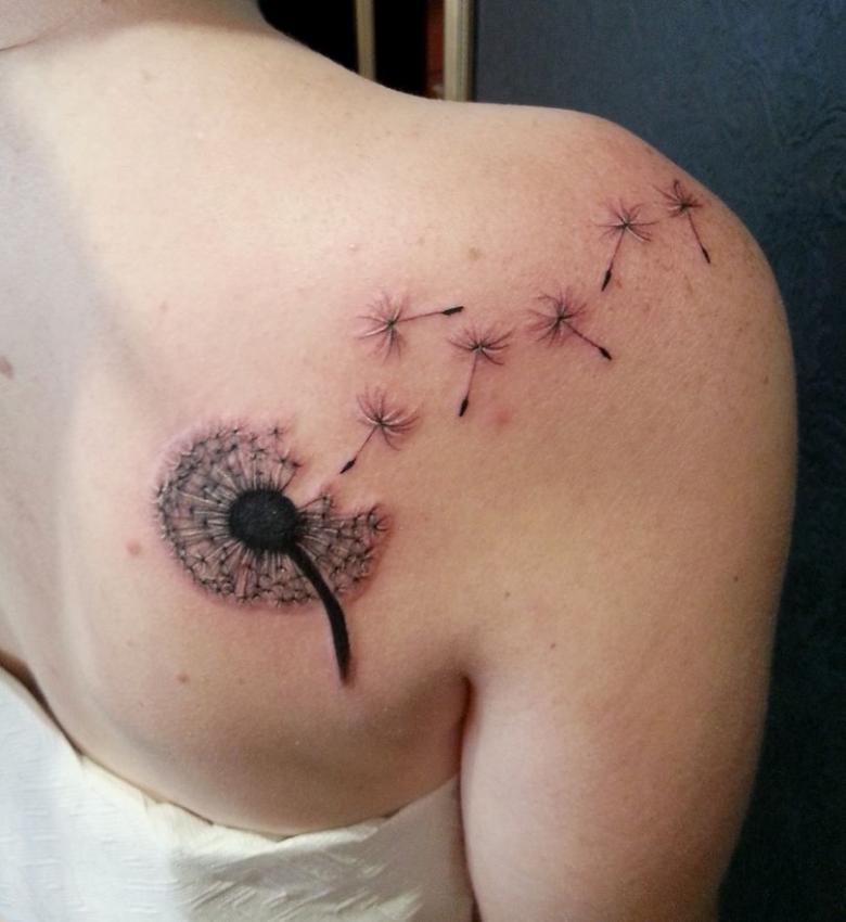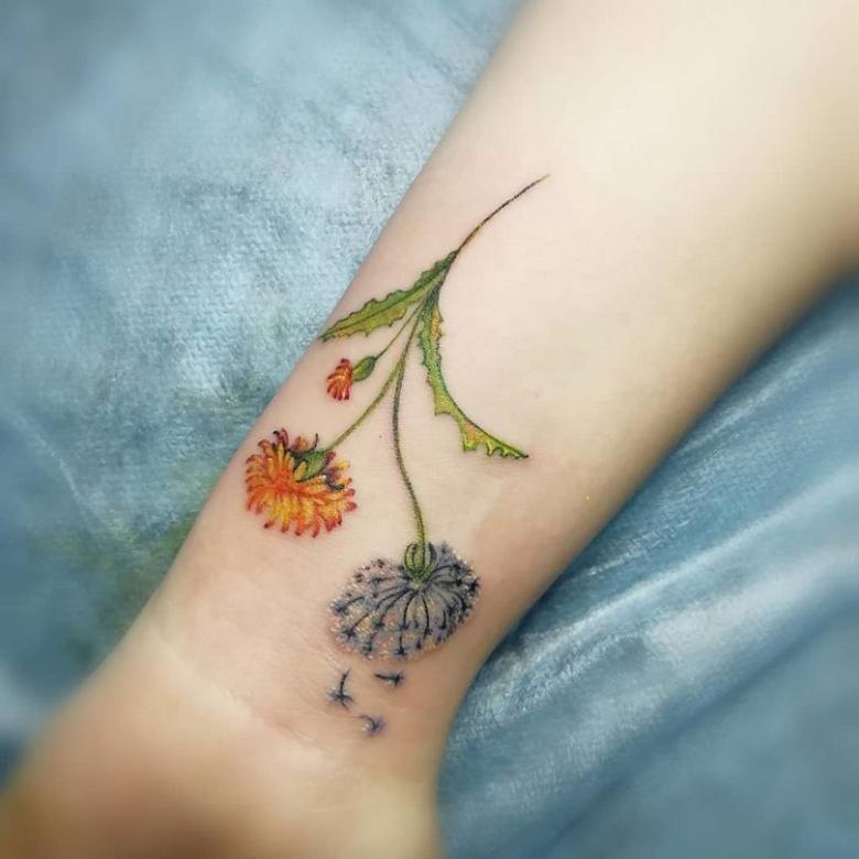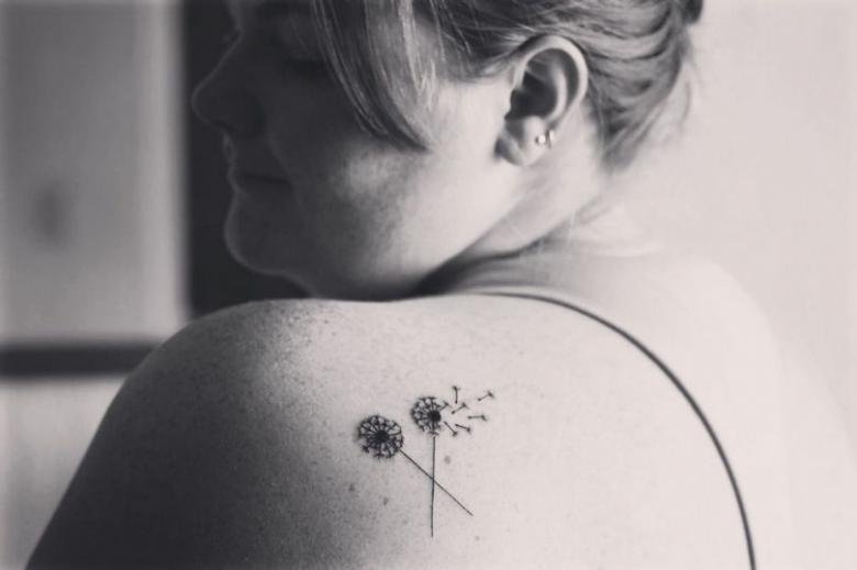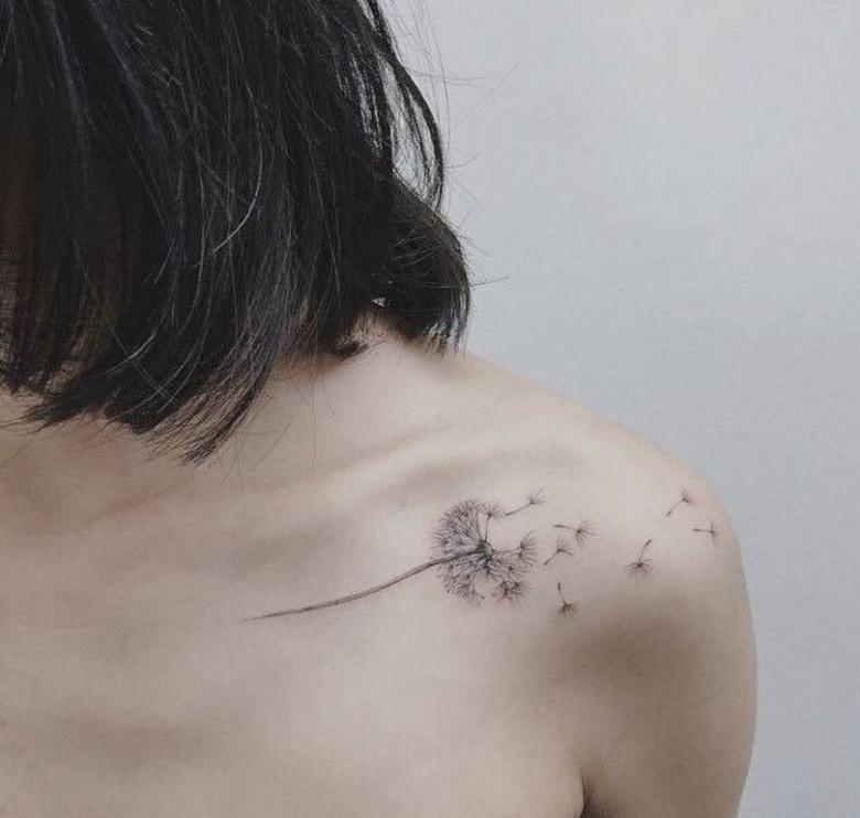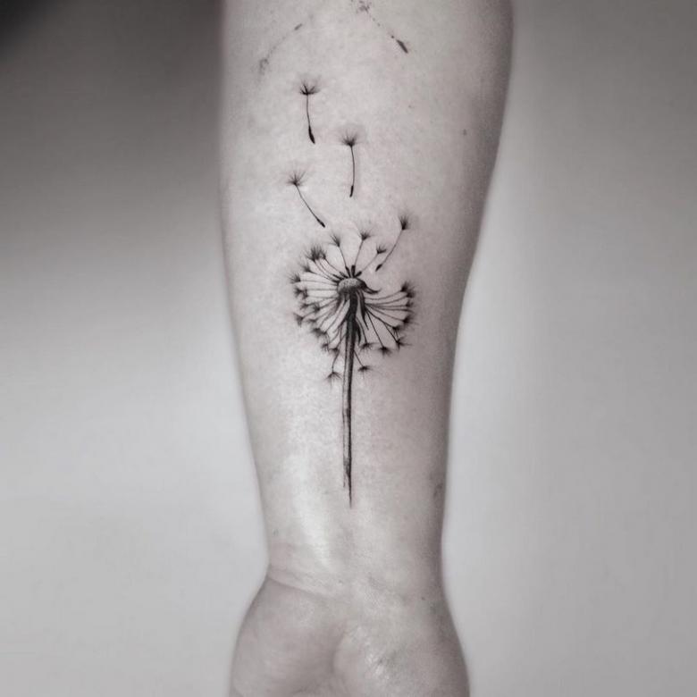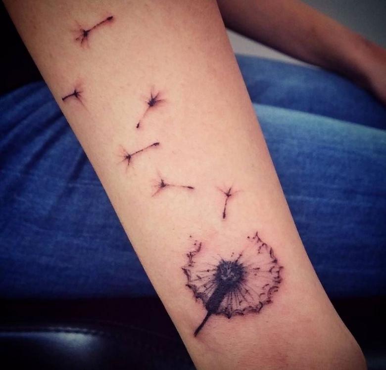 L'emplacement du tatouage d'un pissenlit peut être différent, il est souvent imprimé sur les mains et sur les poignets et les chevilles. Ils sont souvent accompagnés d'inscriptions qui en renforcent le symbolisme. Une photo détaillée du dos et de l'omoplate est de bon aloi. Les tatouages de pissenlit de grand format sont réalisés sur l'épaule.