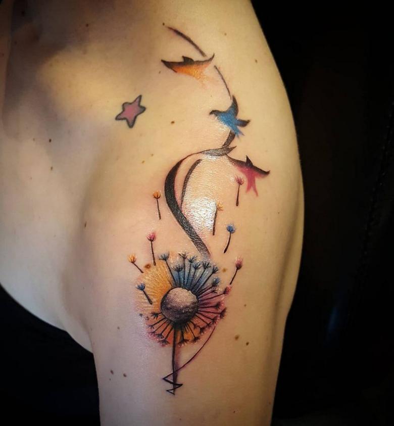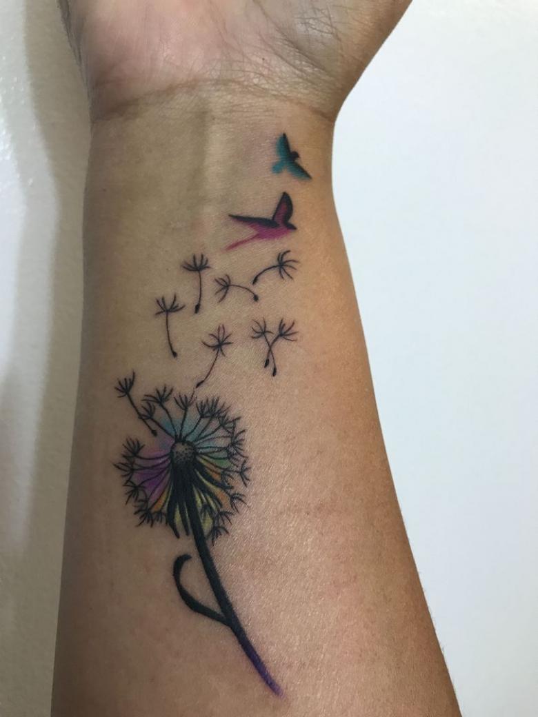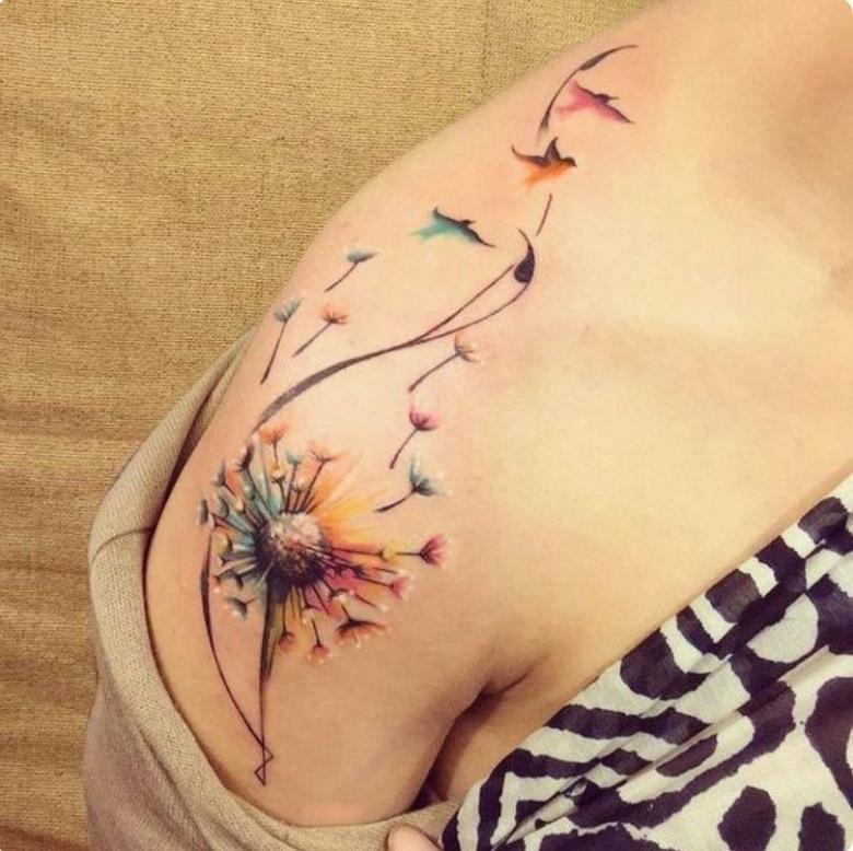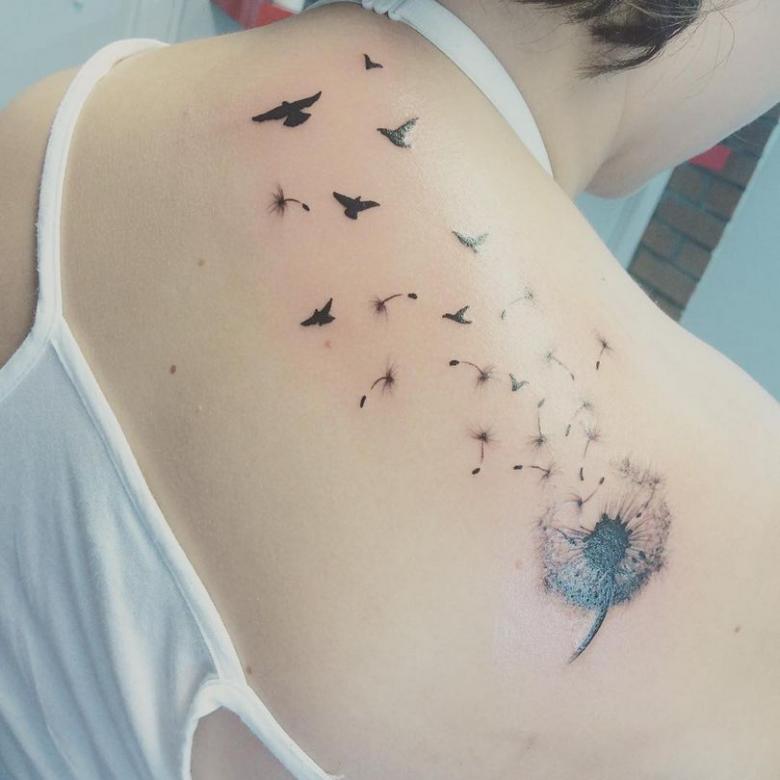 Il est important de prêter attention aux détails du tatouage de pissenlit. Si la fleur est représentée avec des oiseaux, c'est un signe d'amour de la liberté, d'indépendance. Lorsqu'une personne atteint certains sommets dans la vie, elle peut souvent choisir un tel dessin. C'est un rappel du chemin qui mène du bas de l'échelle au prestige.