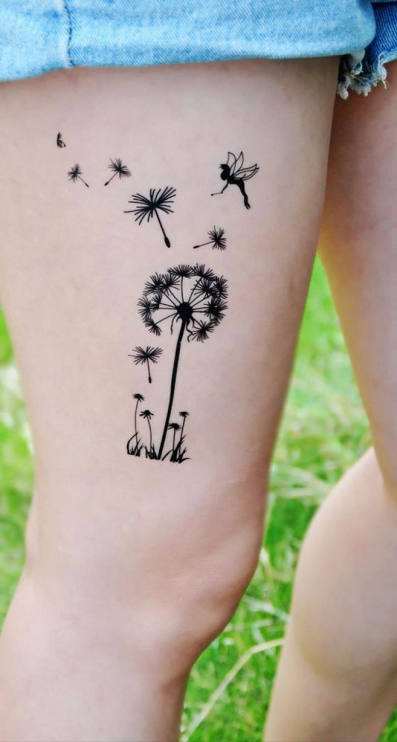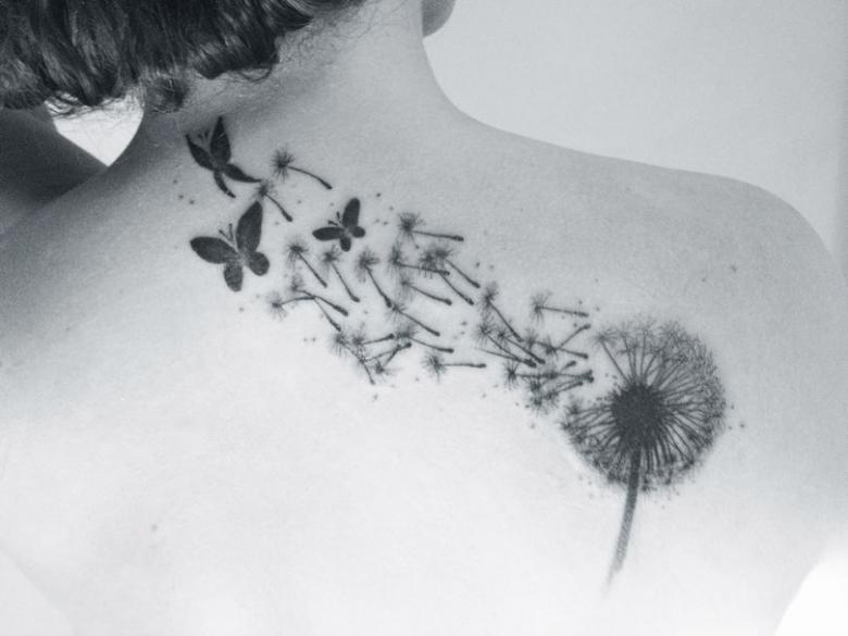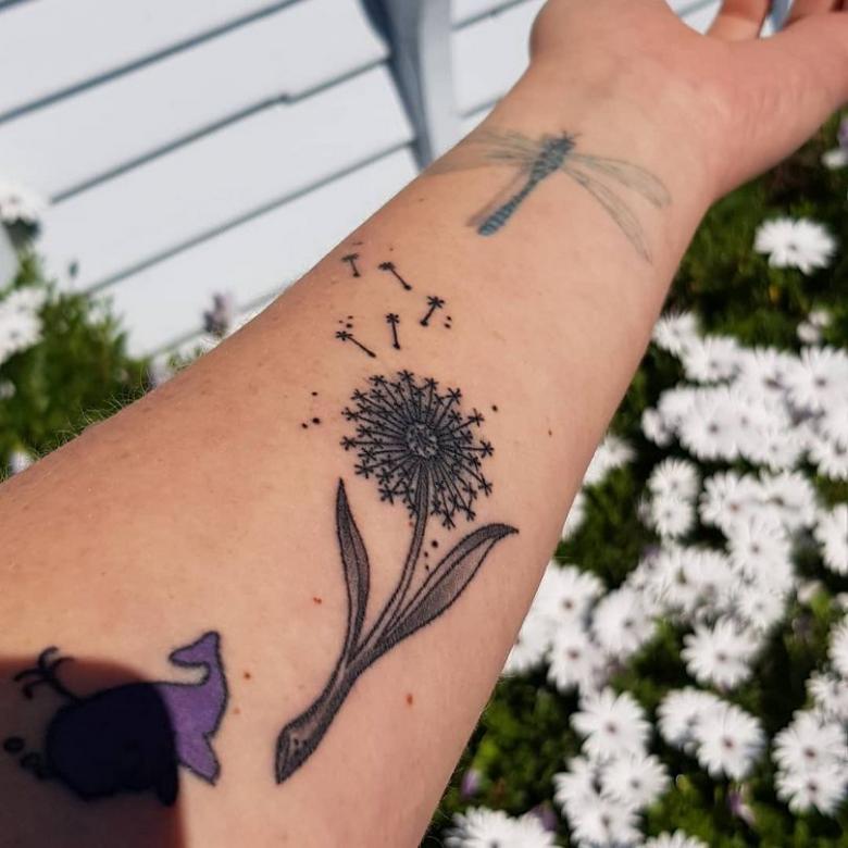 Tatouage Pissenlit - significations pour les filles et les hommes, emplacement (sur le bras, le poignet, le dos, la clavicule, l'omoplate, la jambe), vignettes et idées de photos amusantes.