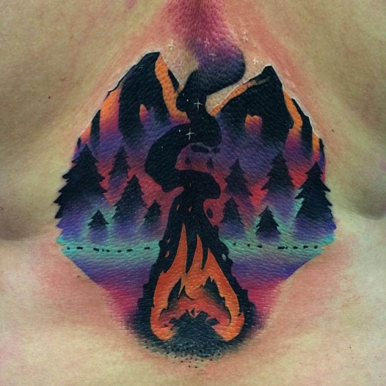 Le feu est le symbole ultime de la renaissance, de la transformation : de même que les flammes débridées modifient la structure et l'apparence de tout ce qu'elles peuvent atteindre, de même la personne qui choisit un tatouage en forme de feu est toujours prête à changer radicalement sa vie, renonçant au passé mais regardant l'avenir avec espoir.