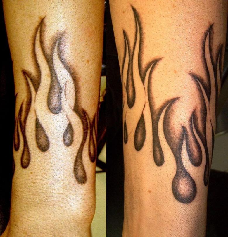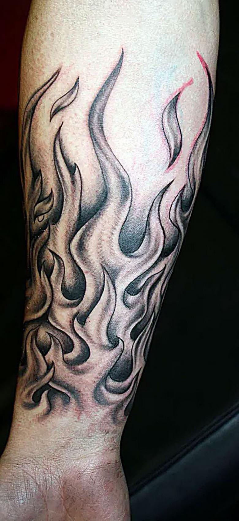 Les styles dans lesquels un tel tatouage peut être réalisé ne sont limités que par la fantaisie du porteur et le professionnalisme du maître. Même en noir et blanc, le feu peut paraître imposant et crédible.