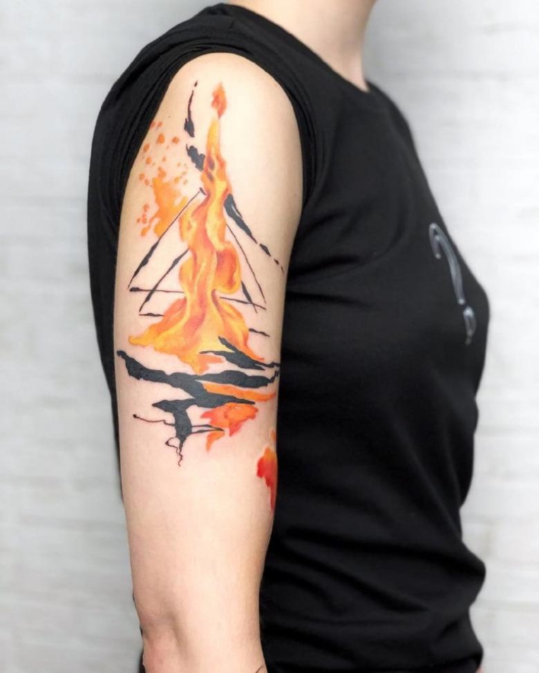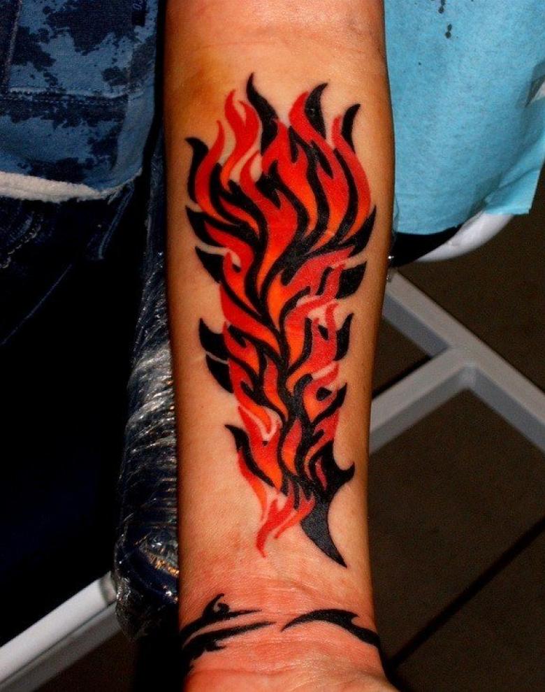 C'est le symbole du pouvoir invincible, et ceux qui choisissent ce tatouage sont souvent passionnés, émotifs et d'un tempérament fougueux. Le feu est souvent utilisé dans les tatouages avec d'autres symboles. Cela donne au tatouage une signification supplémentaire :