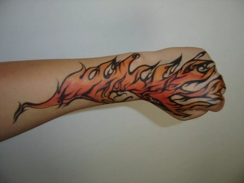 Le tatouage avec l'image d'un feu peut être un symbole que le propriétaire d'un tel motif ne connaît pas la peur et n'a peur d'aucun danger. Mais il ne peut pas non plus être contrôlé et n'obéit à personne, et il est enclin à l'agressivité.