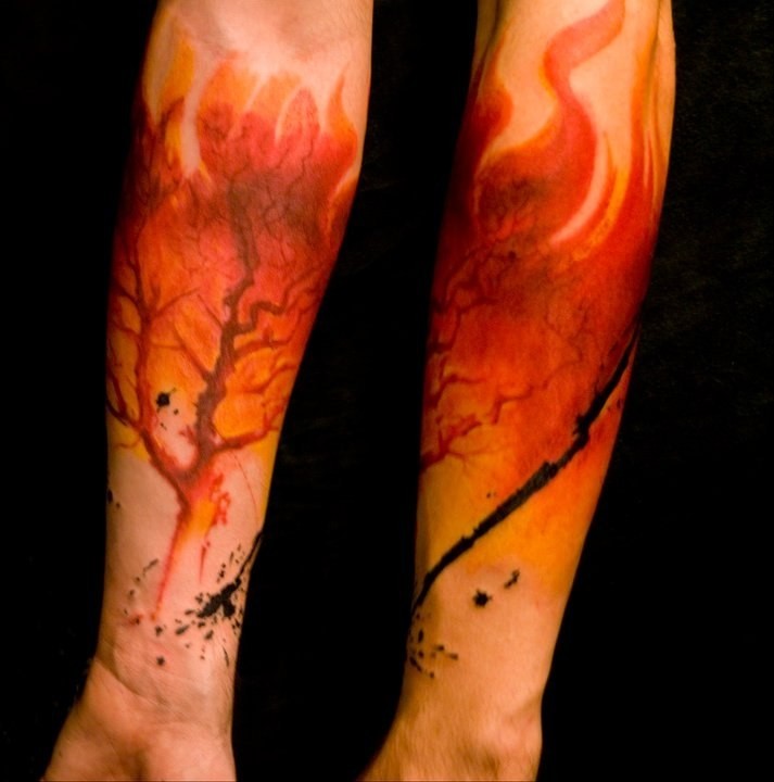 Tattoo Fire - description, signification pour les filles et les hommes, où appliquer, beaux dessins et photos
