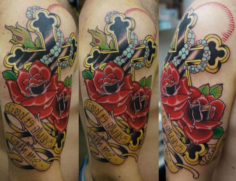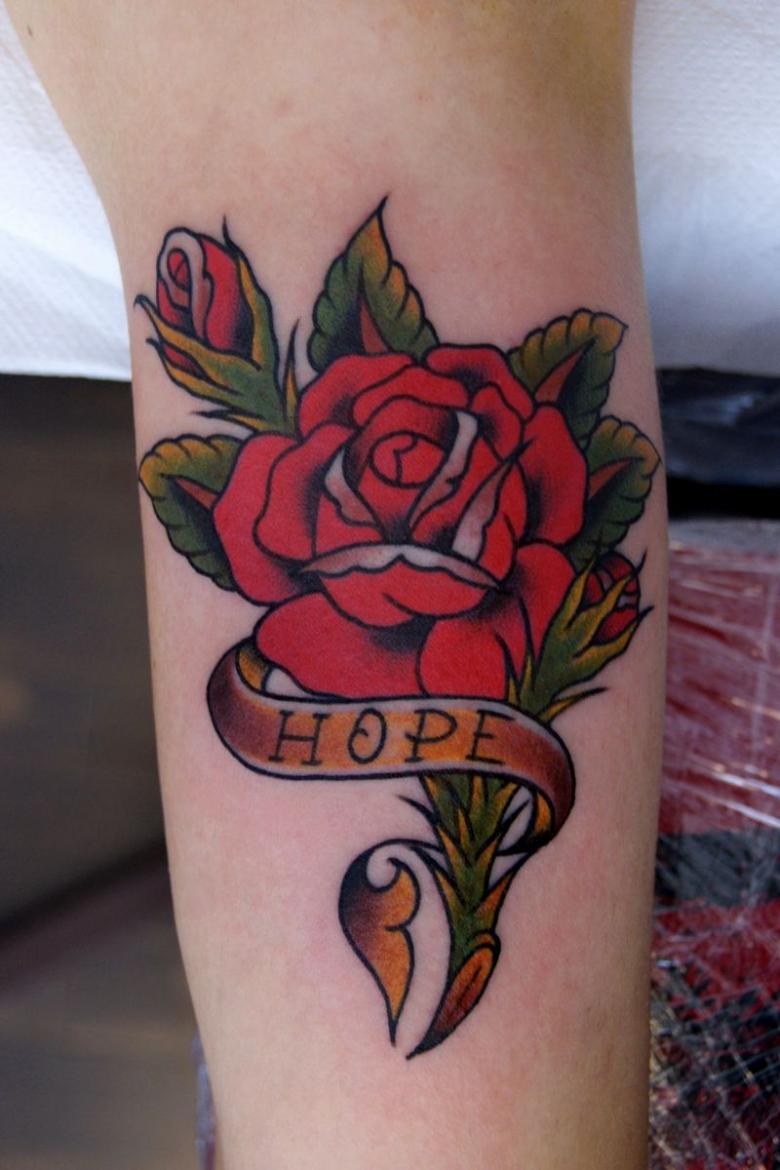 Un autre trait frappant et caractéristique des tatouages old skool est la présence d'inscriptions obligatoires réalisées dans différentes langues. Ce style est caractérisé par un symbolisme élevé, représenté dans des choses simples et compréhensibles par tous, et il n'est pas habituel de diviser les styles de tatouage old skool masculin et féminin.