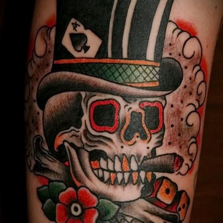 Contrairement au symbolisme sinistre et aux associations désagréables, le crâne est un symbole de dépassement des difficultés et donne de la force au porteur d'un tel tatouage. Pour ceux qui pratiquaient le commerce pirate, le symbole représentait l'intrépidité et l'impitoyabilité, l'incapacité à faire des compromis.