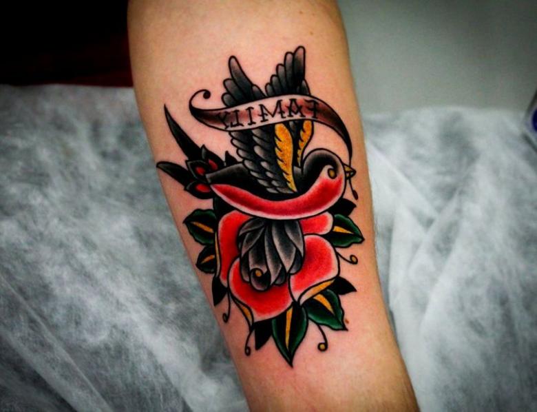 Tattoo old skool - une description complète, où marquer, croquis d'hommes et de femmes, noir et couleur, photos amusantes du travail