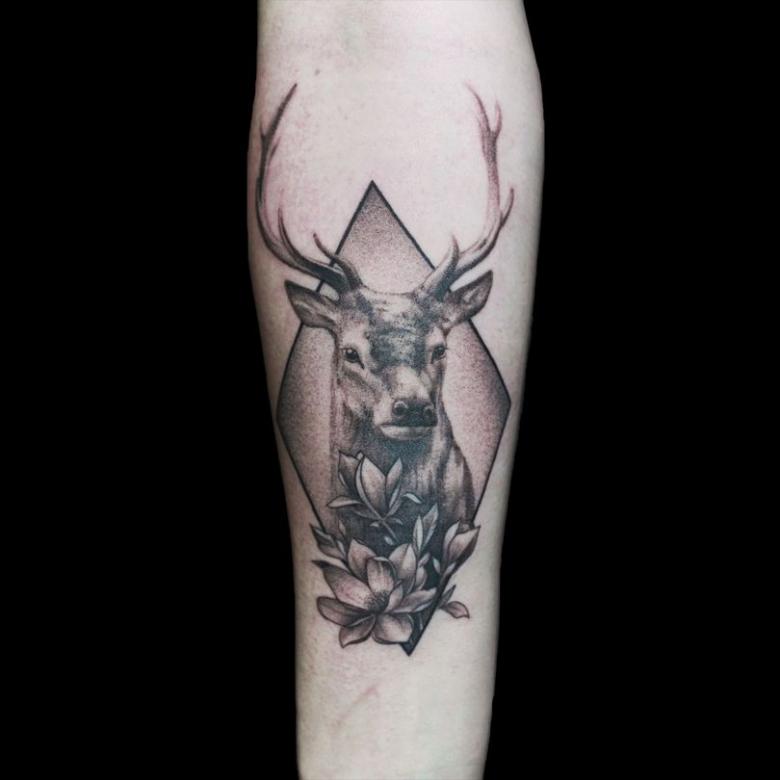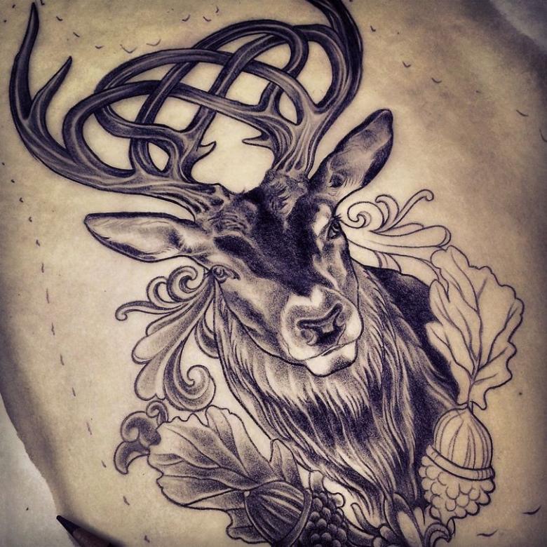 Depuis les temps anciens, le symbole du cerf était considéré comme un signe de prospérité et de connexion avec les forces supérieures. Chaque nation avait sa propre interprétation de son effet magique, mais le principe général était partout le même, et toutes n'accordaient à l'image que des qualités positives. Le renne est un guide entre le monde des mortels et le monde des divinités. Ces ordres ont survécu jusqu'à aujourd'hui, c'est pourquoi les images de ce noble animal sont encore utilisées dans l'art, y compris les tatouages, à ce jour.