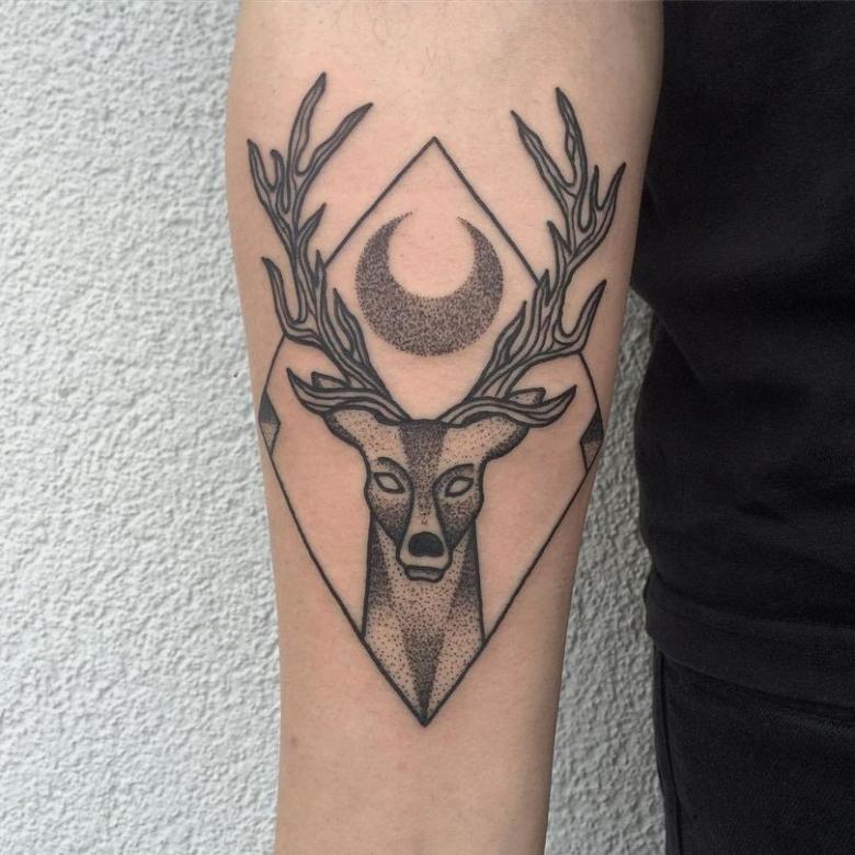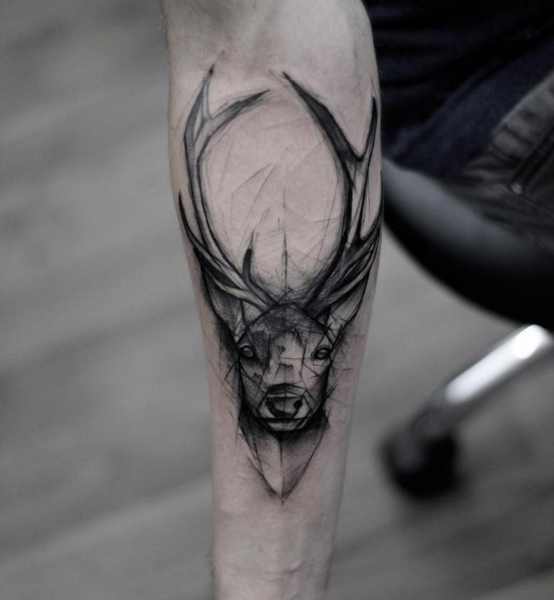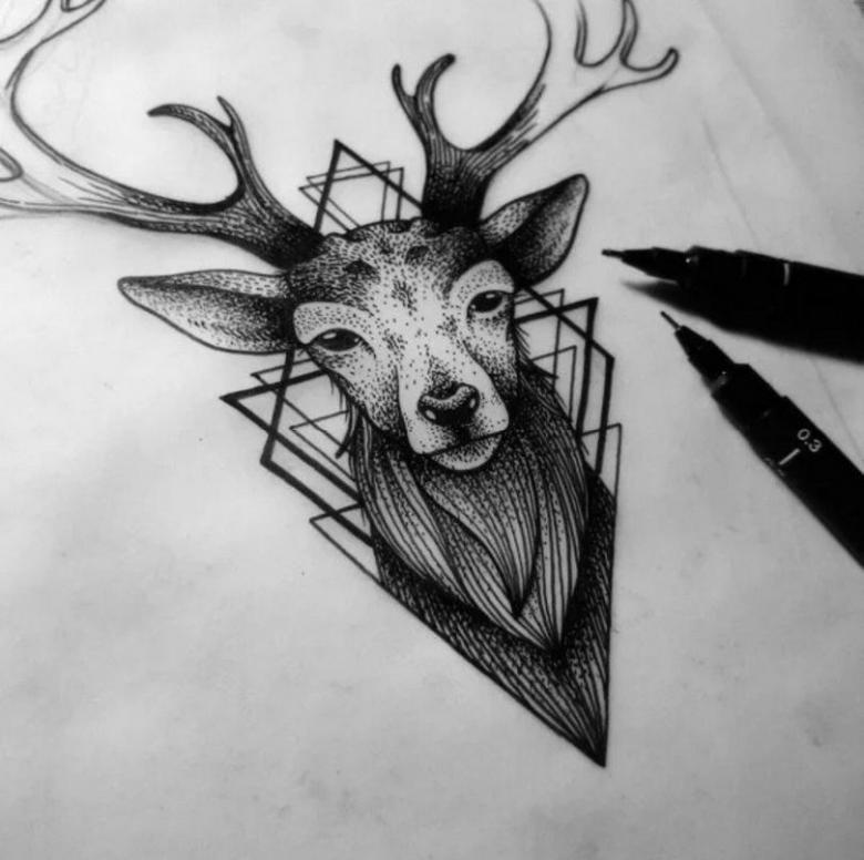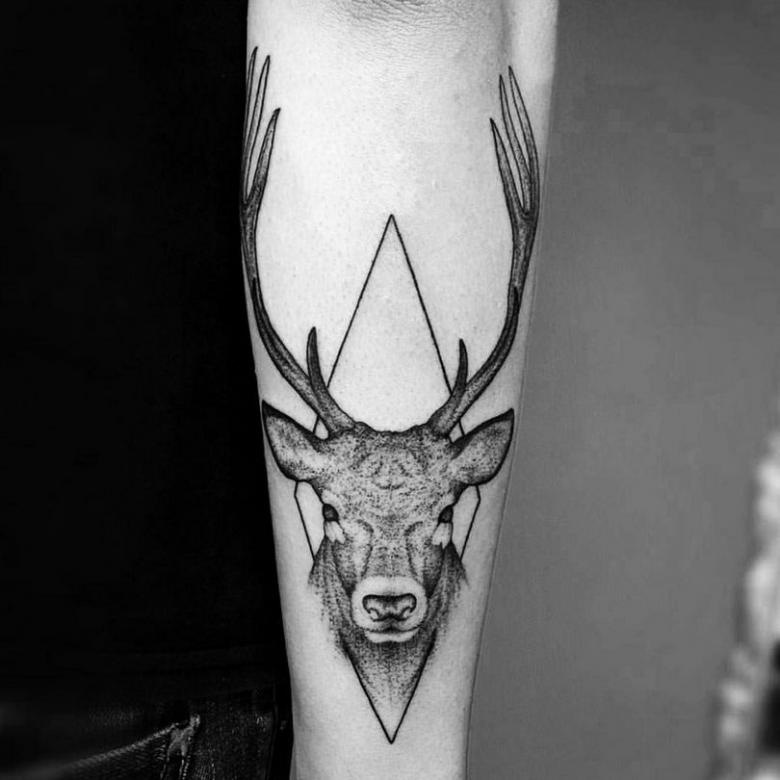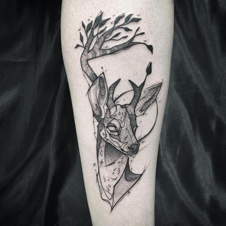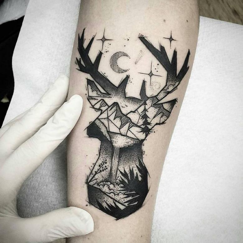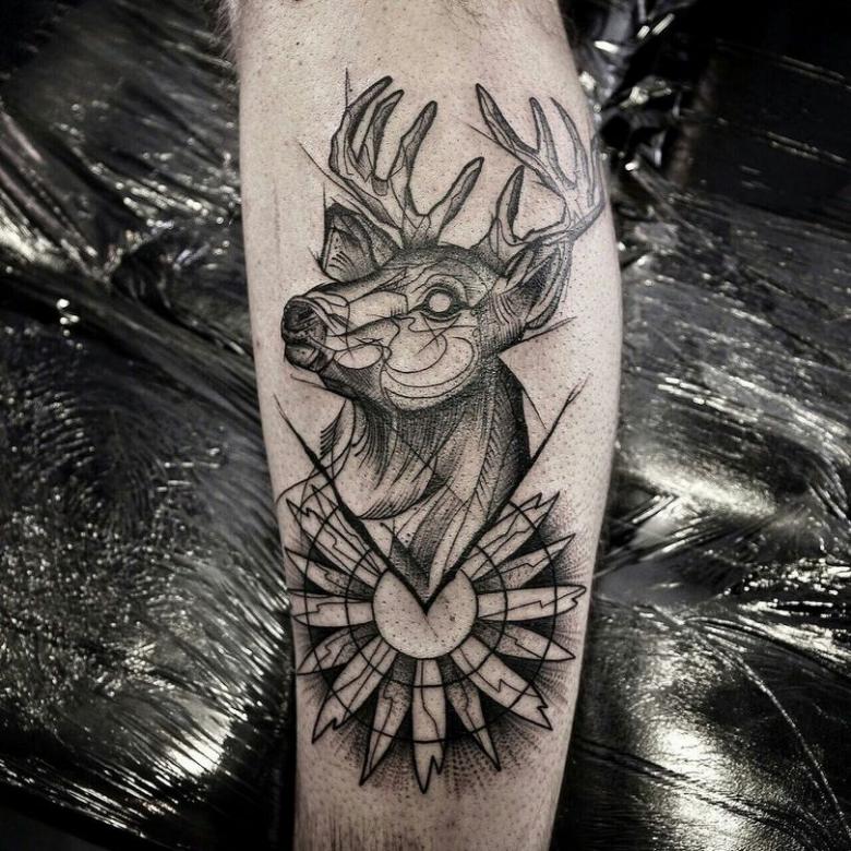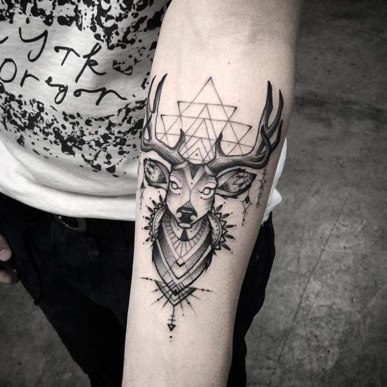 Tattoo cerf - significations pour les filles et les hommes, le lieu d'application (sur la poitrine, le bras, l'avant-bras, la jambe), de beaux dessins et des idées de photos