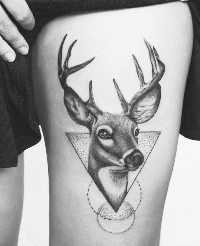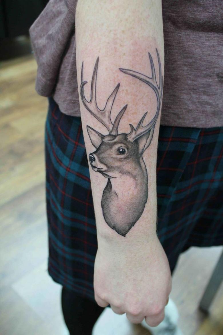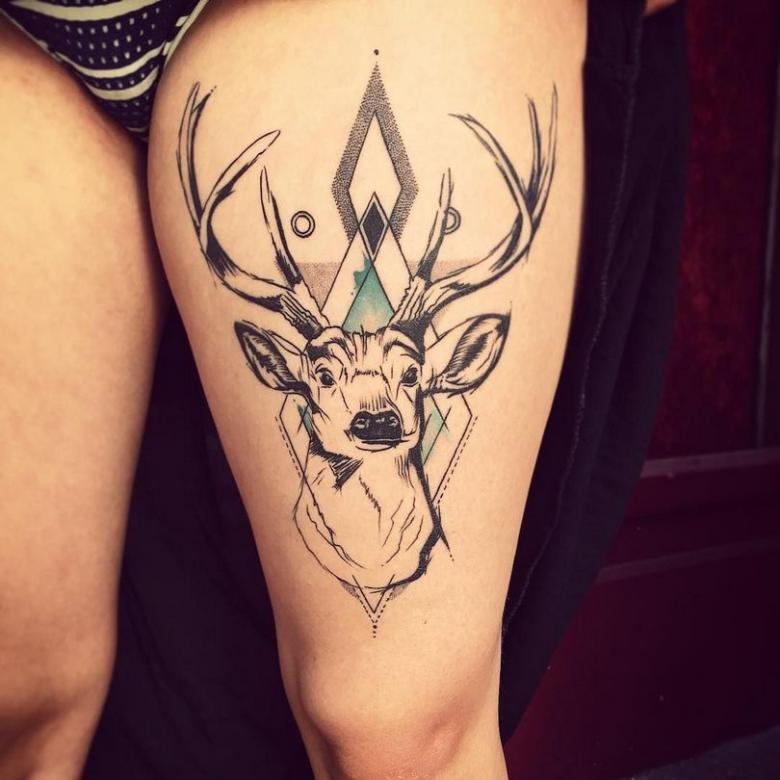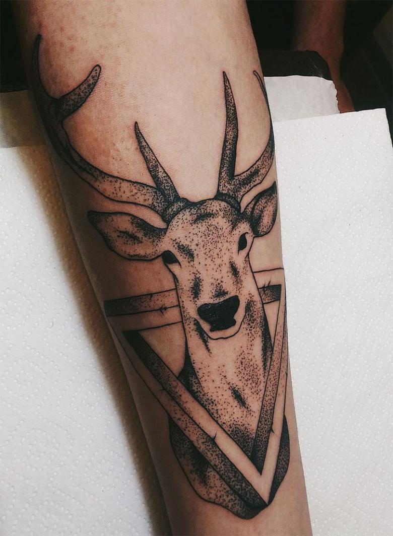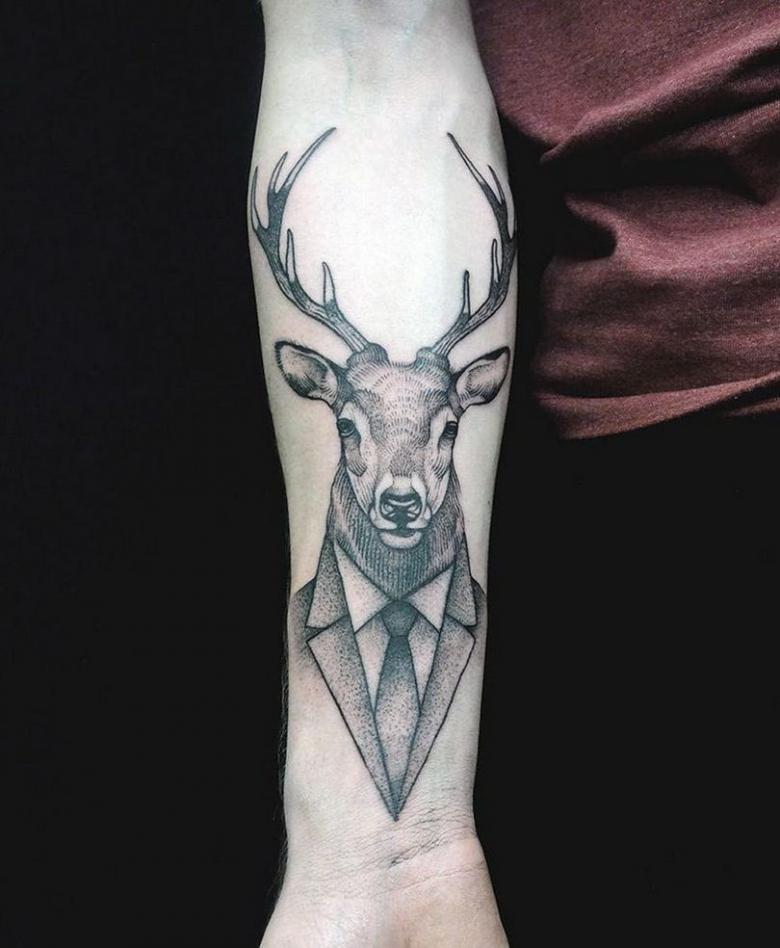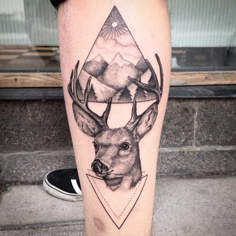 Tattoo cerf - significations pour les filles et les hommes, le lieu d'application (sur la poitrine, le bras, l'avant-bras, la jambe), de beaux dessins et des idées de photos