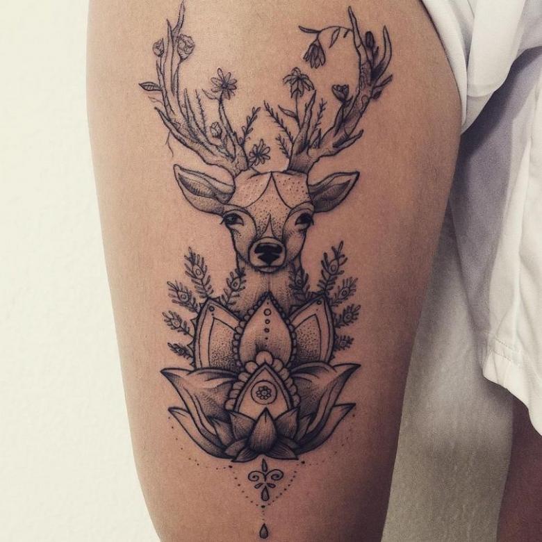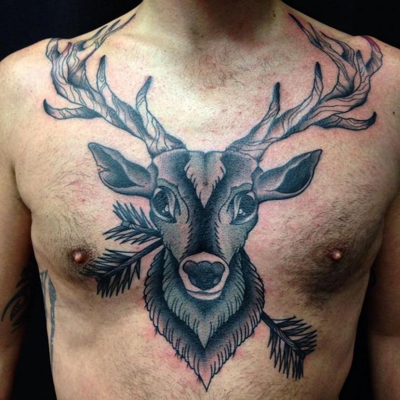 Le plus souvent, le symbole du cerf est associé à la masculinité, car dans la nature, les puissantes cornes, qui évoquent la joie et l'admiration, ne se trouvent que chez les mâles. Souvent, ces tatouages sur le corps des hommes prennent beaucoup de place, et ils sont dessinés pour montrer leur masculinité et leur force.