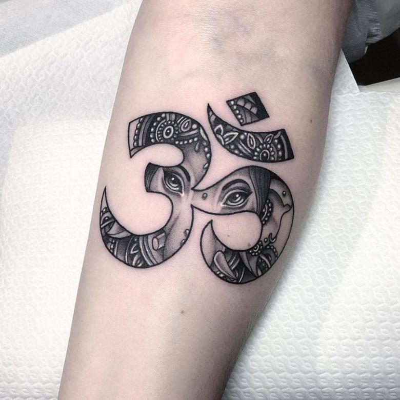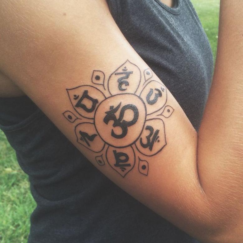 Tattoo Om - description complète, symbolisme, où le placer, croquis et photos
