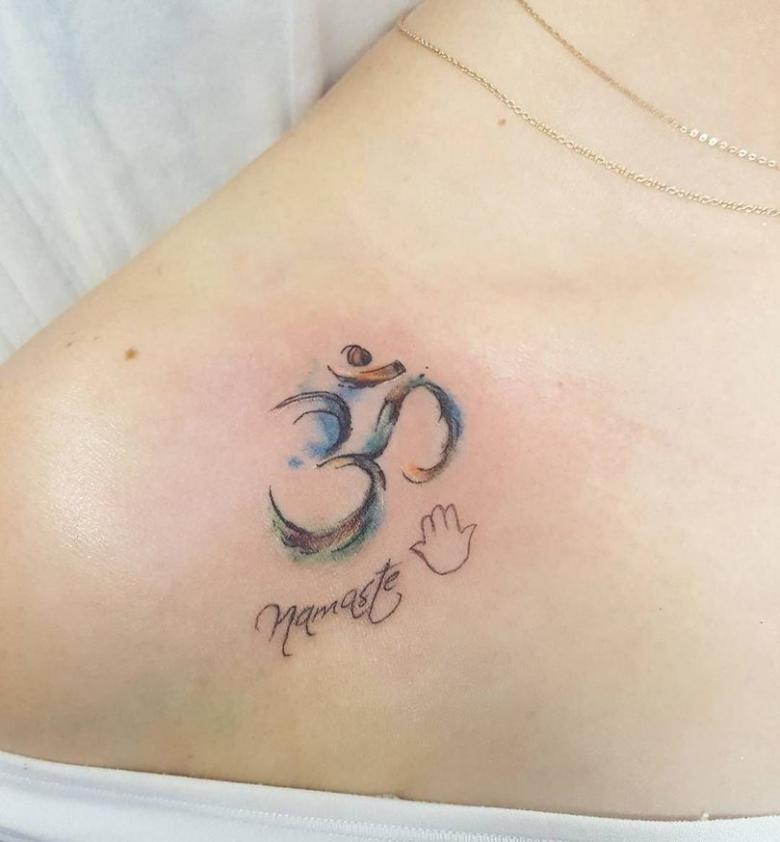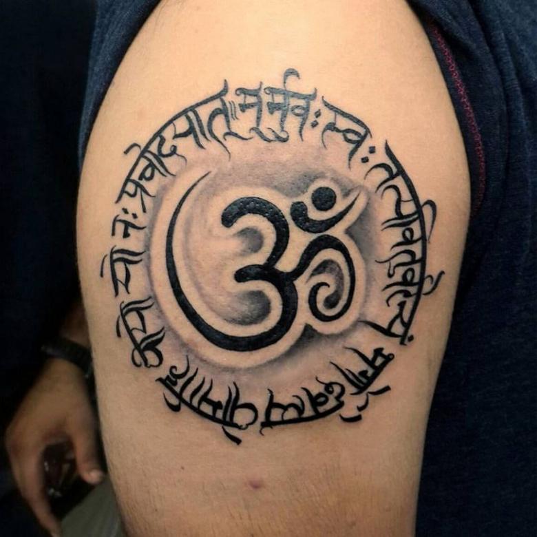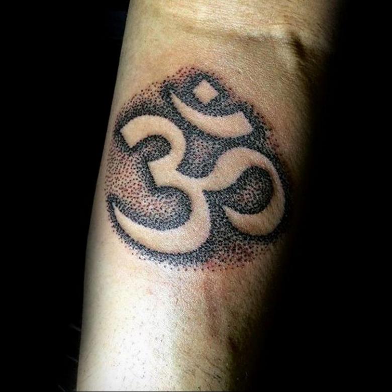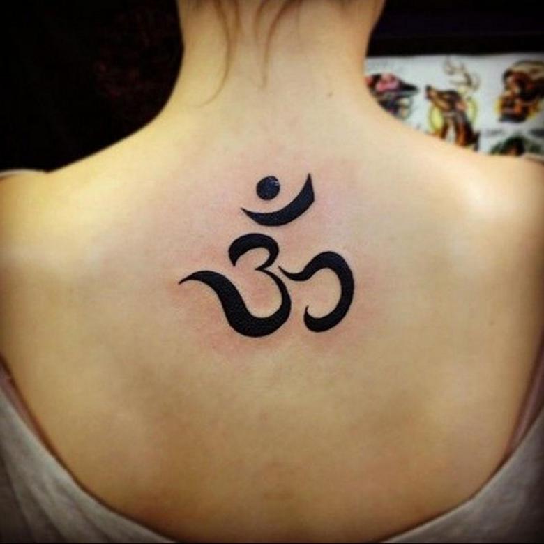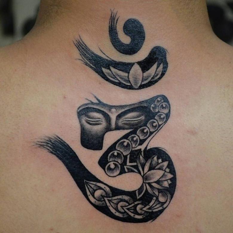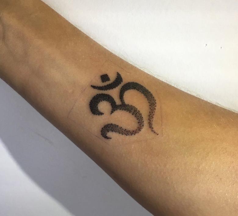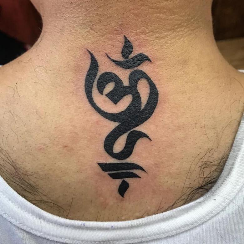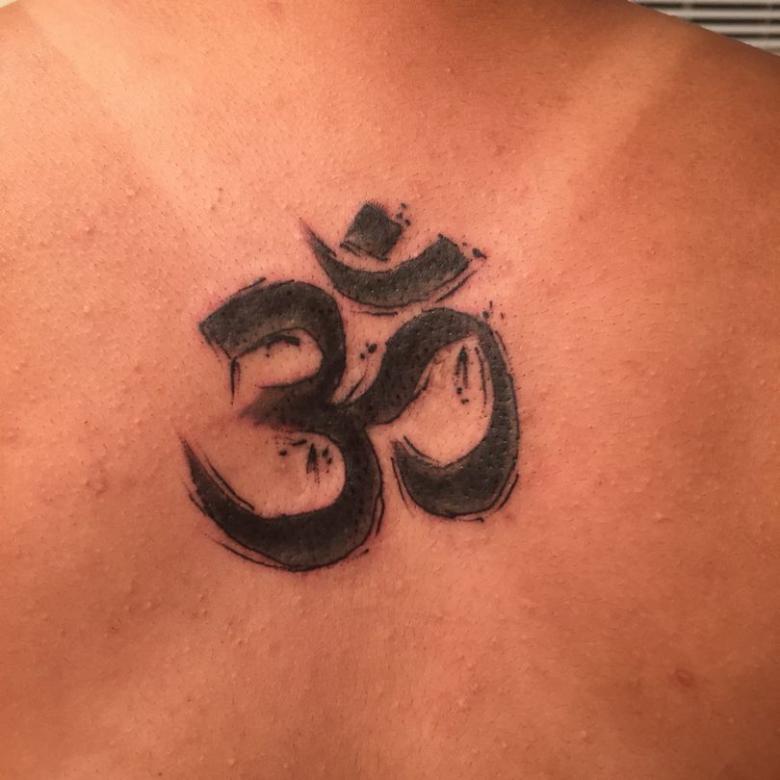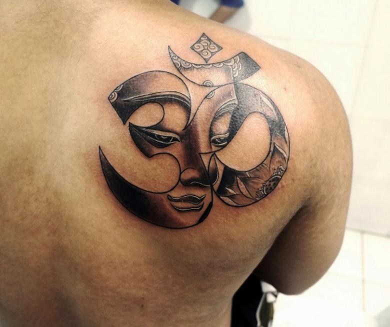 Comme le symbole unit les énergies masculine et féminine, sombre et lumineuse, il est porteur du sens de l'indivisibilité et de la globalité du monde. Cette personne est en train de faire une quête spirituelle, cherchant son chemin vers Dieu. Le tatouage Om est un rappel de rester sur la voie de la conscience, de faire les bons choix et de s'efforcer d'atteindre l'illumination même dans les situations les plus difficiles.