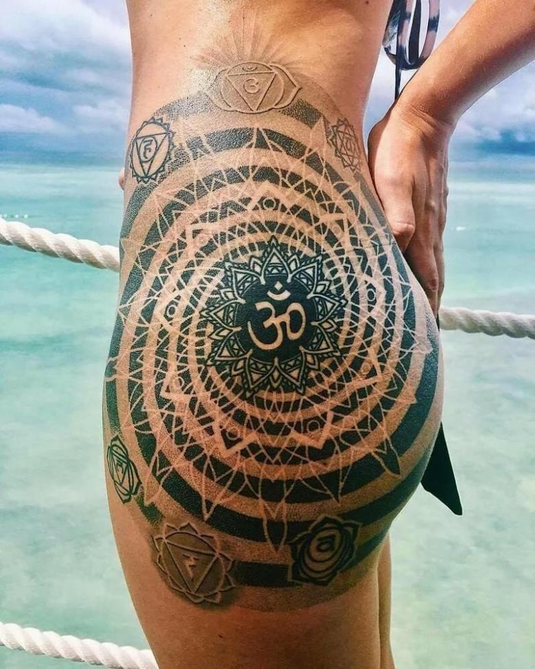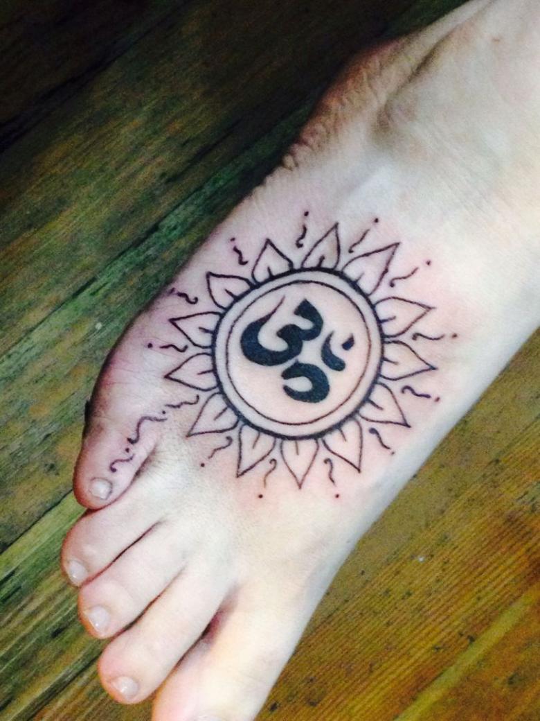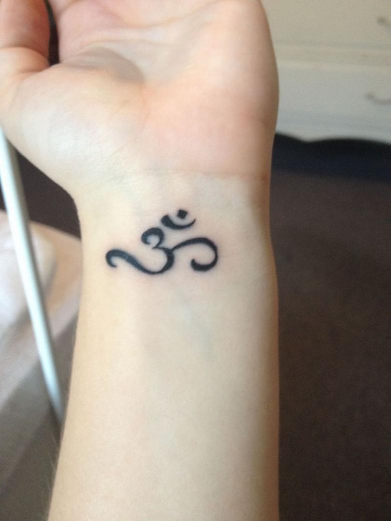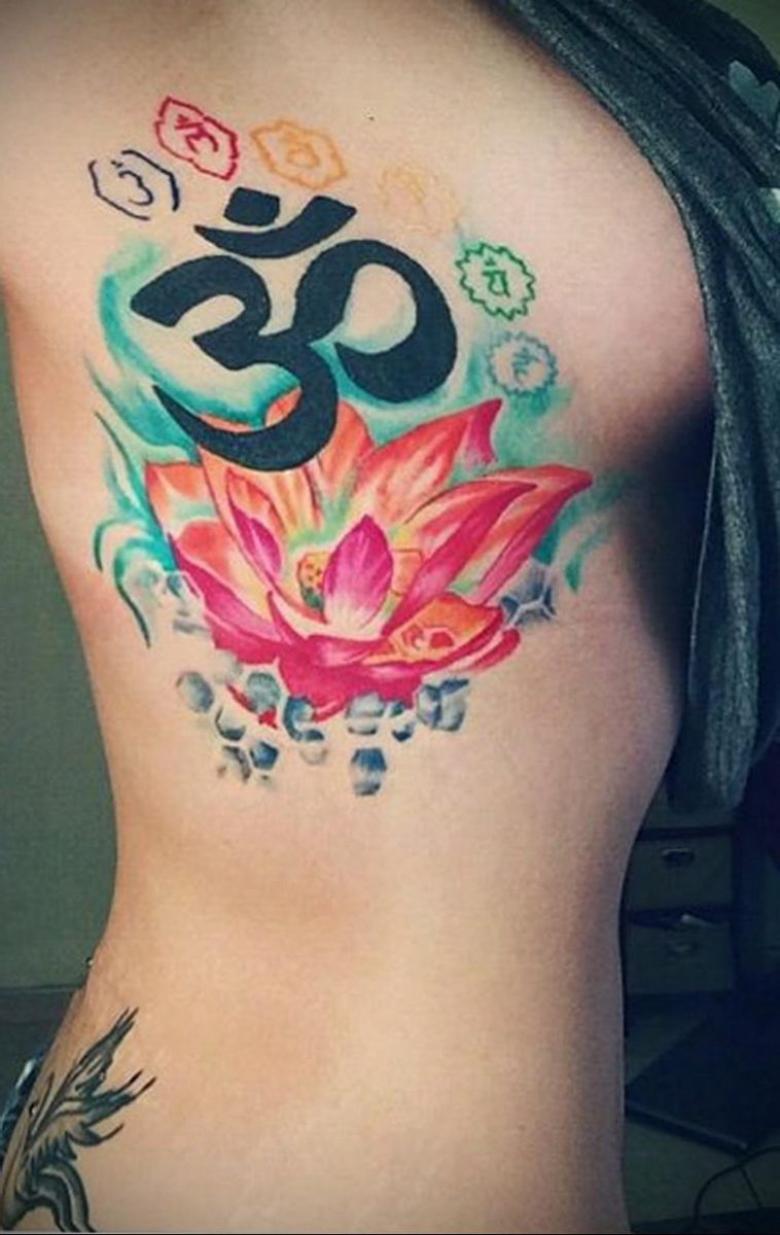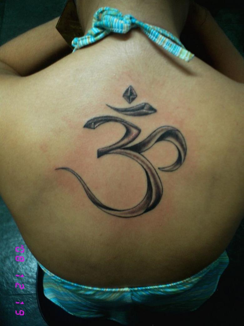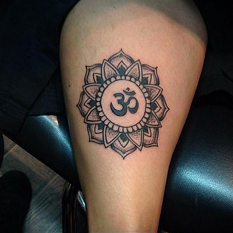 Comme le symbole unit les énergies masculine et féminine, sombre et lumineuse, il est porteur du sens de l'indivisibilité et de la globalité du monde. Cette personne est en train de faire une quête spirituelle, cherchant son chemin vers Dieu. Le tatouage Om est un rappel de rester sur la voie de la conscience, de faire les bons choix et de s'efforcer d'atteindre l'illumination même dans les situations les plus difficiles.