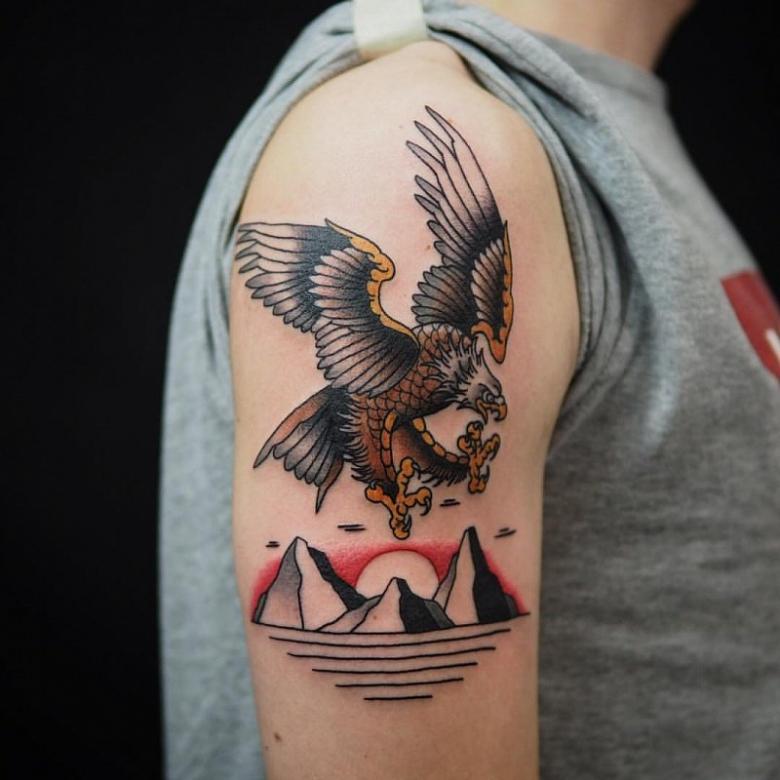 Le tatouage de l'aigle est destiné aux hommes plus âgés ayant une plus grande expérience de la vie plutôt qu'aux jeunes hommes ayant un mode de vie plus décontracté.